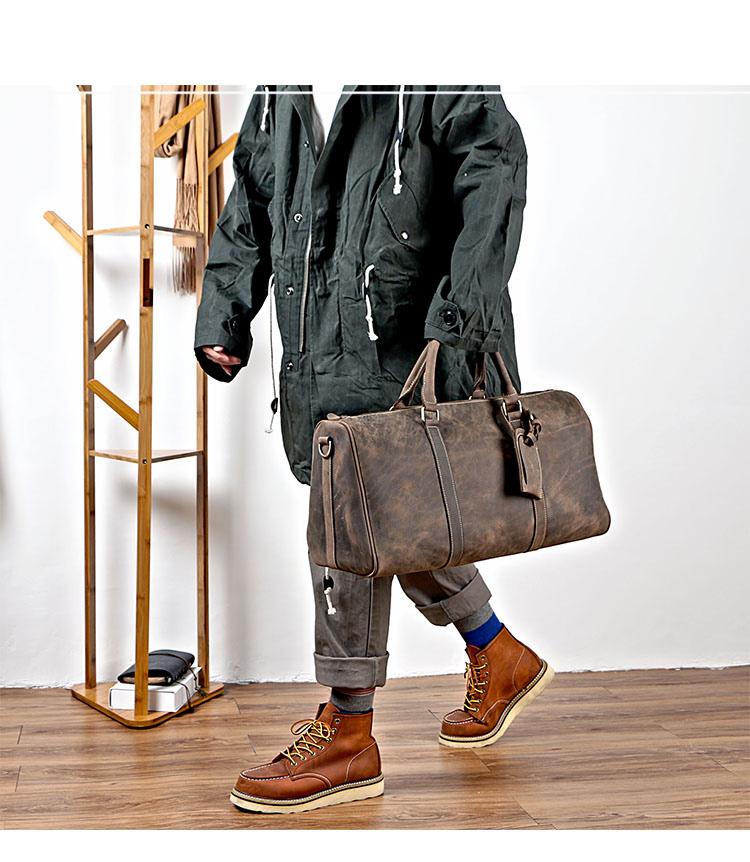 Style: Black Leather Mens Casual Large Travel Bags Shoulder Weekender Bags Dark Gray Duffle Bag For Men