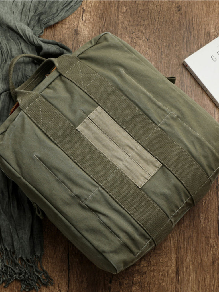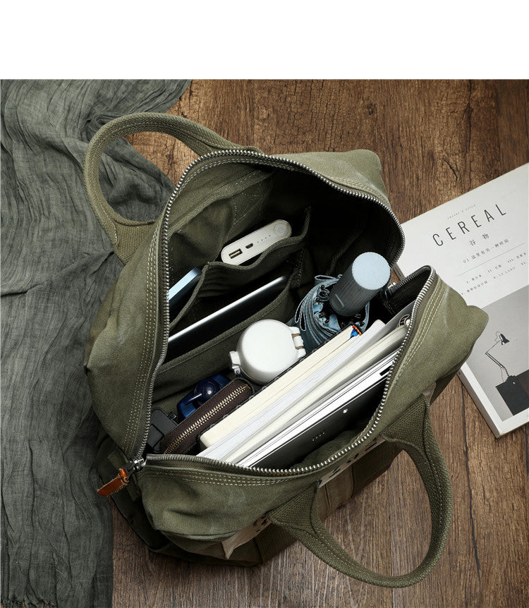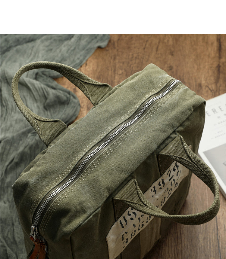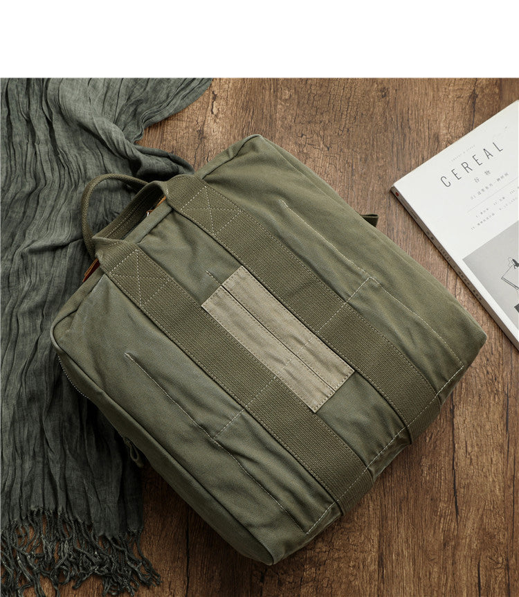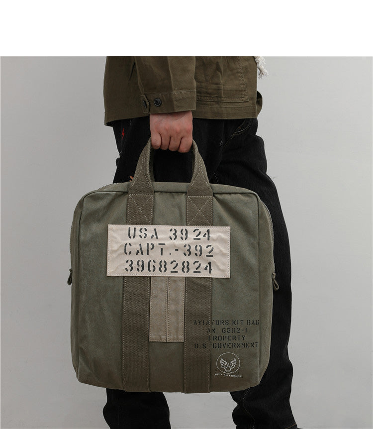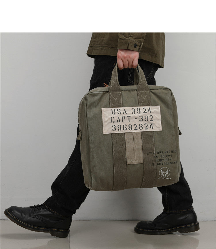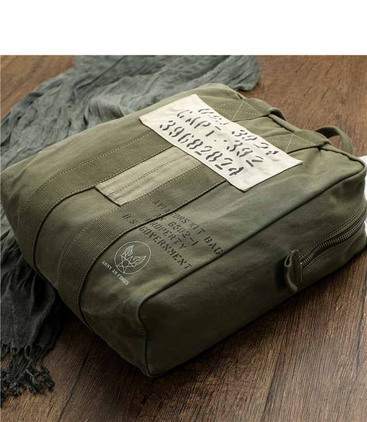 Crafted from durable, high-quality canvas, the bag draws inspiration from the rugged, utilitarian designs of World War II, ensuring both longevity and a timeless aesthetic. The army green color adds a touch of vintage military charm, making it a versatile piece that complements both casual and professional attire.