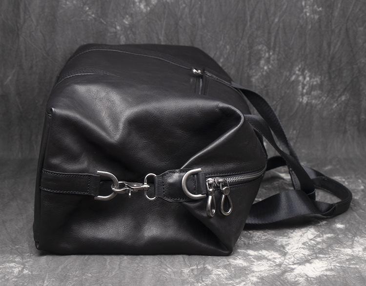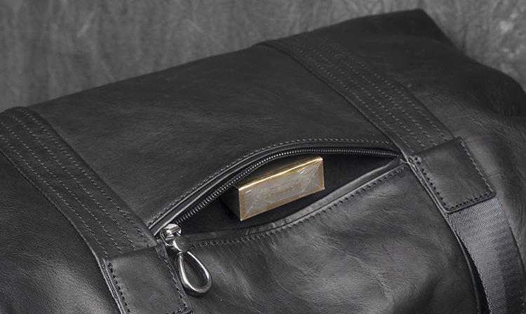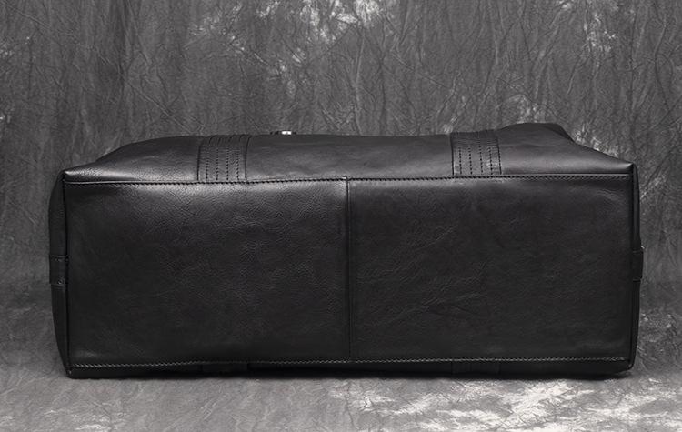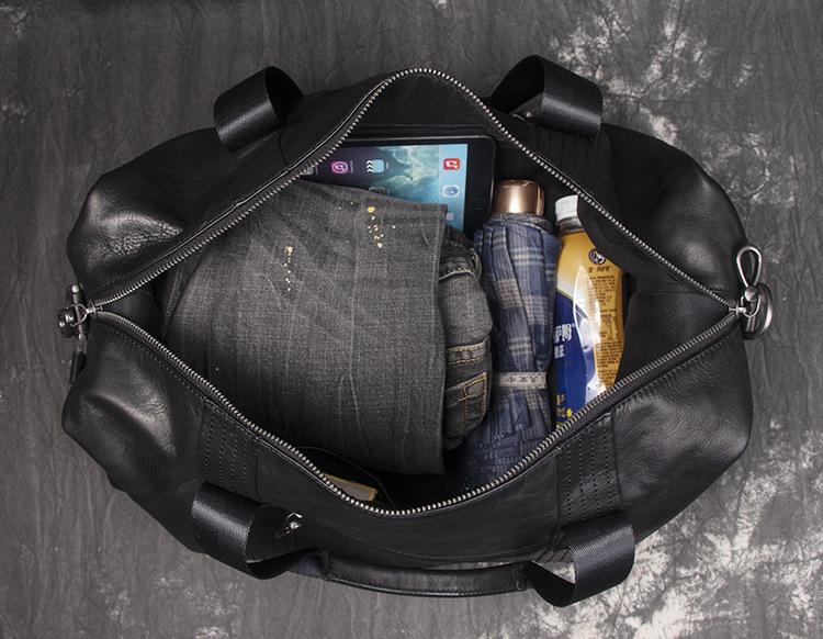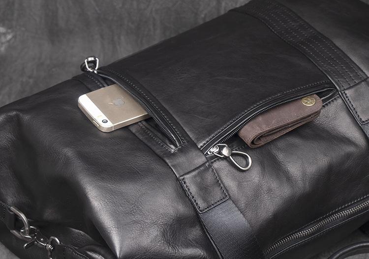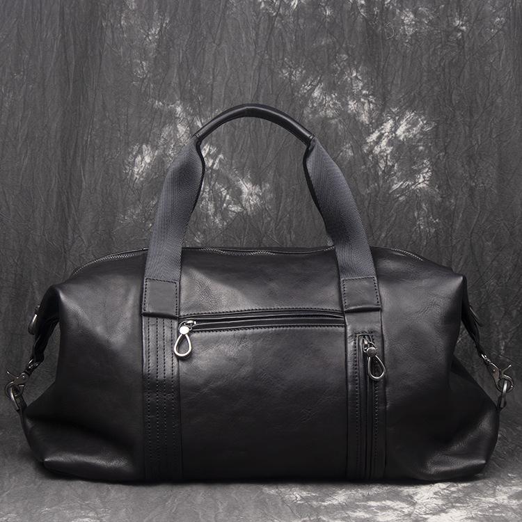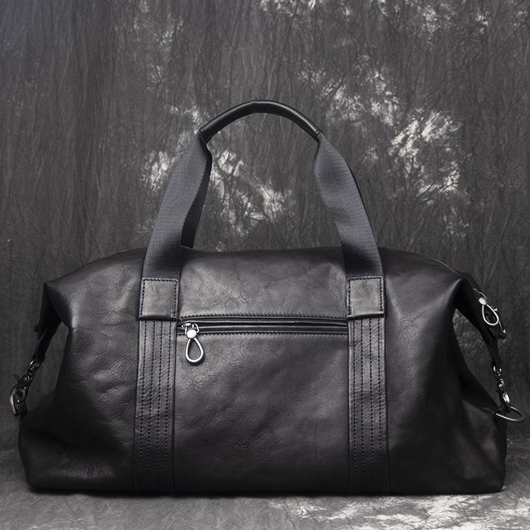 Style: Casual Black Leather Men's Overnight Bag Large Travel Bag Luggage Weekender Bag For Men