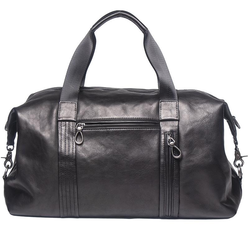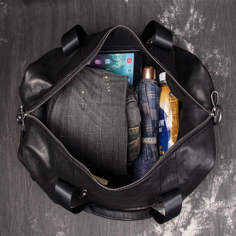 Casual Black Leather Men's Overnight Bag Large Travel Bag Luggage Weekender Bag For Men