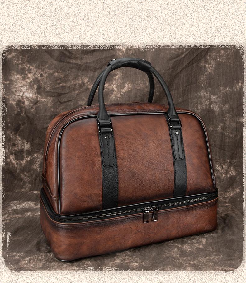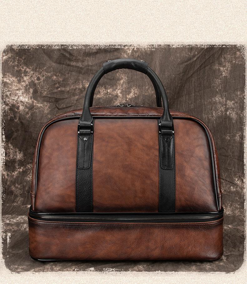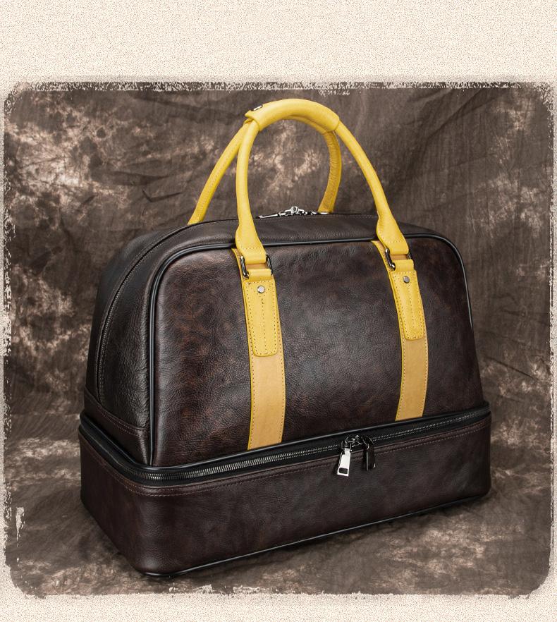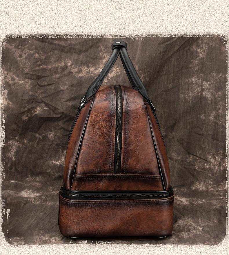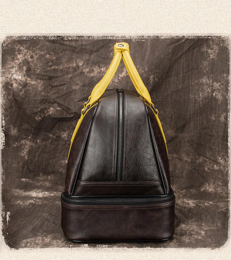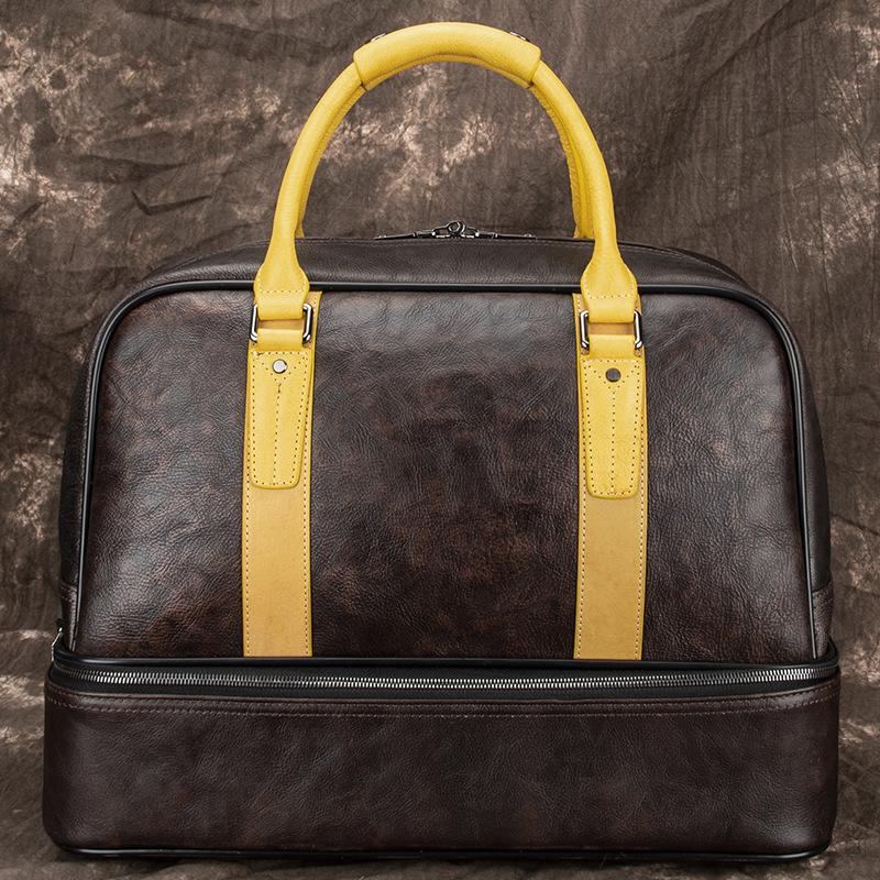 Casual Brown Leather Men Business Weekender Bags Handbag With Shoes Storage Travel Bags Overnight Bags For Men