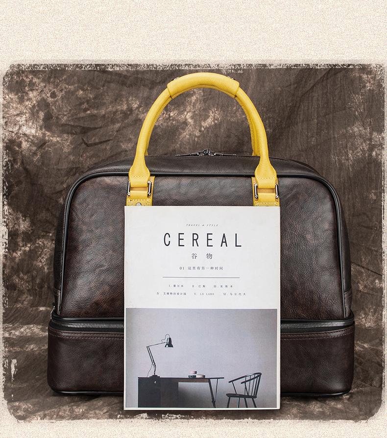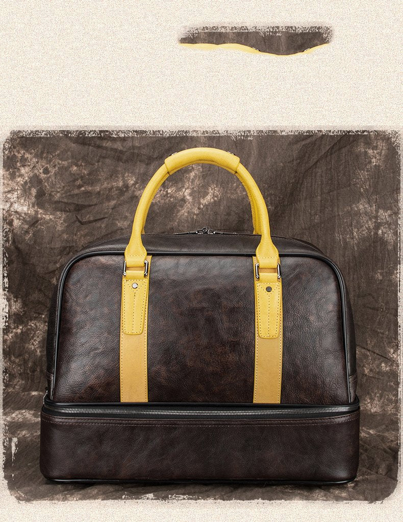 Design: Casual Dark Brown Leather Men Business Weekender Bags Handbag Travel Bags Overnight Bags For Men