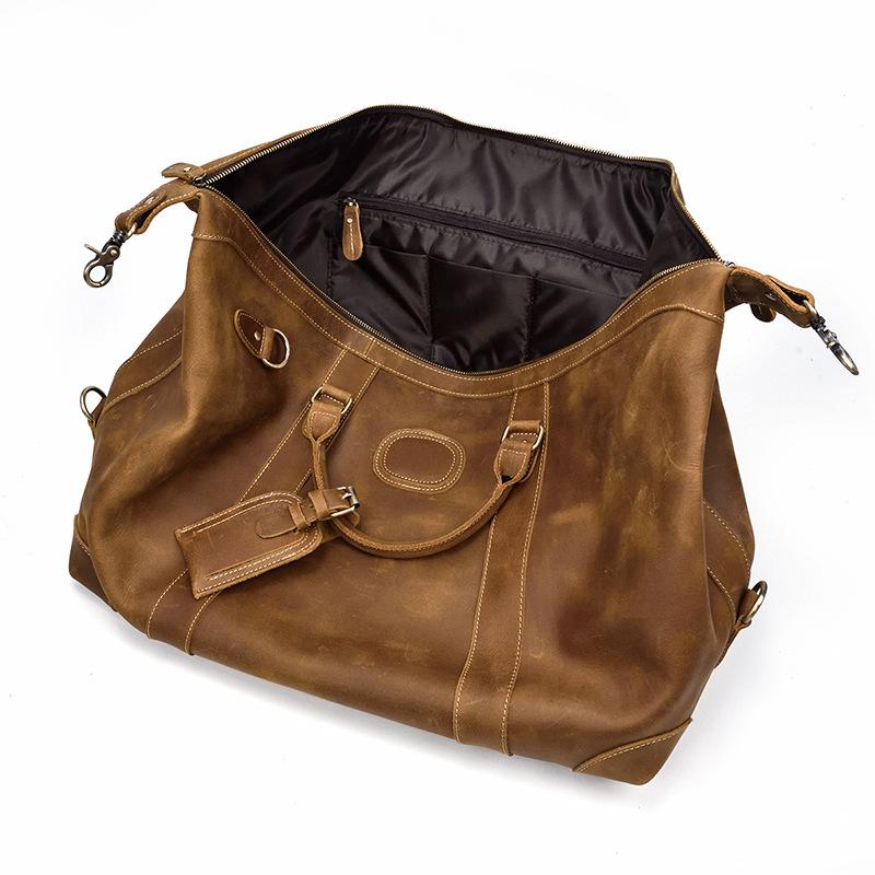 Design: Casual Dark Brown Leather Men Handbag Overnight Bags Travel Bags Weekender Bags For MenOverview: