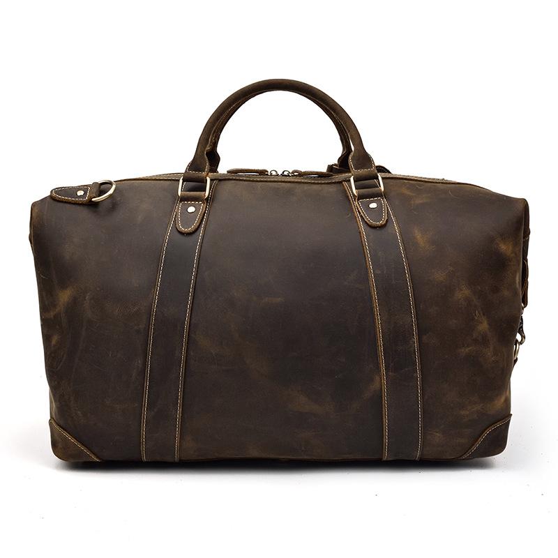 Design: Casual Dark Brown Leather Men Handbag Overnight Bags Travel Bags Weekender Bags For Men