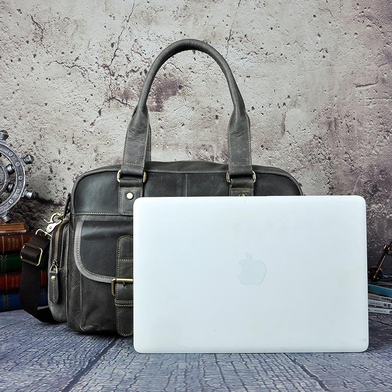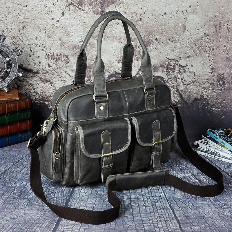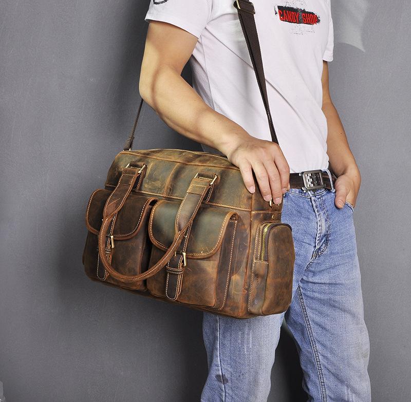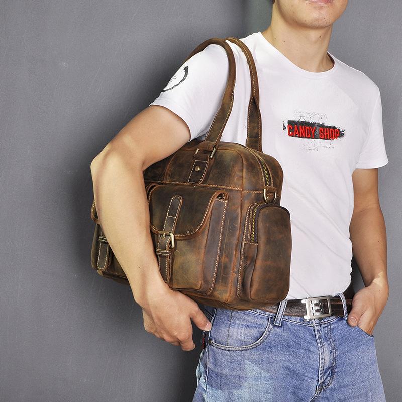 Design: Casual Dark Brown Leather Men's 14 inches Overnight Bag Large Travel Bag Luggage Weekender Bag For MenOverview: