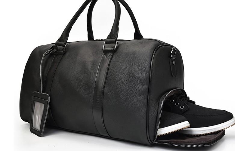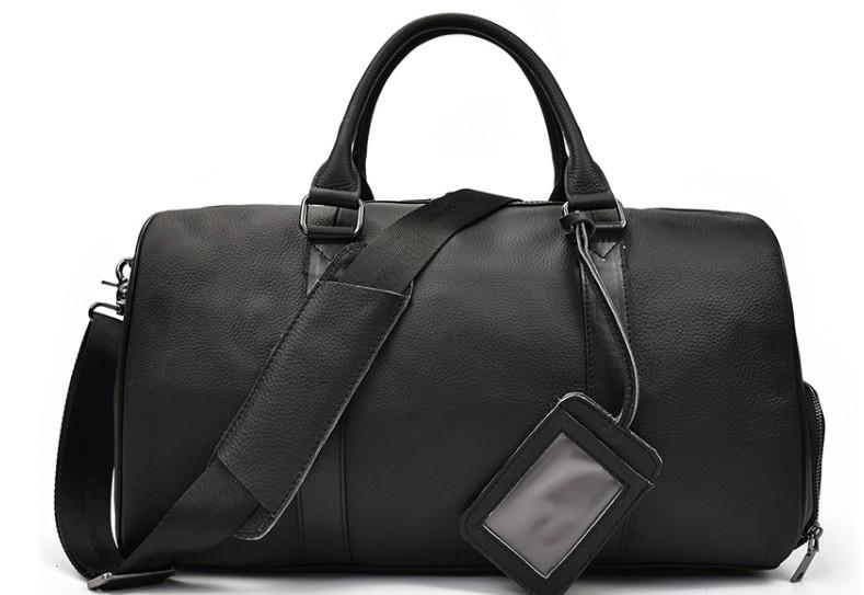 Design: Black Leather Men Large Overnight Bag Travel Bags Weekender Bags For Men