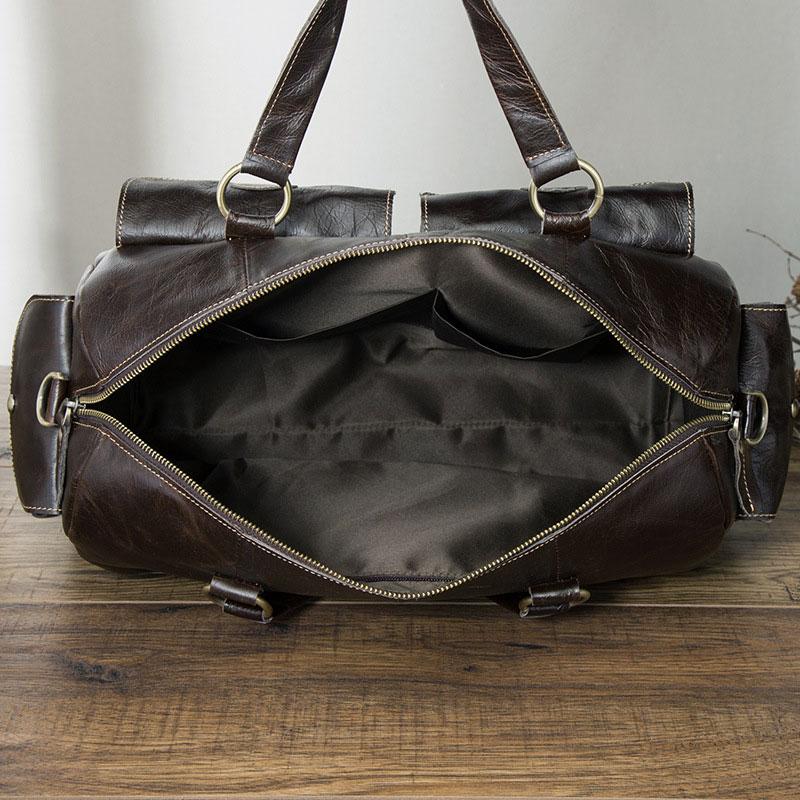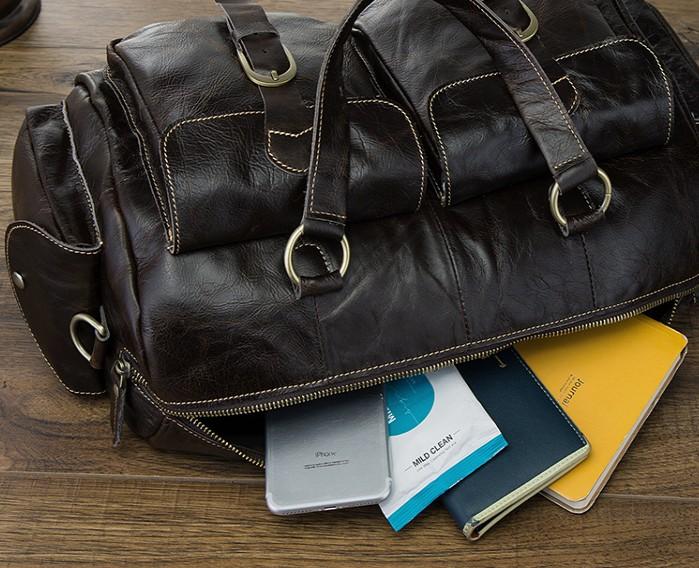 Design: Black Leather Men Large Overnight Bag Travel Bags Weekender Bags For MenOverview: