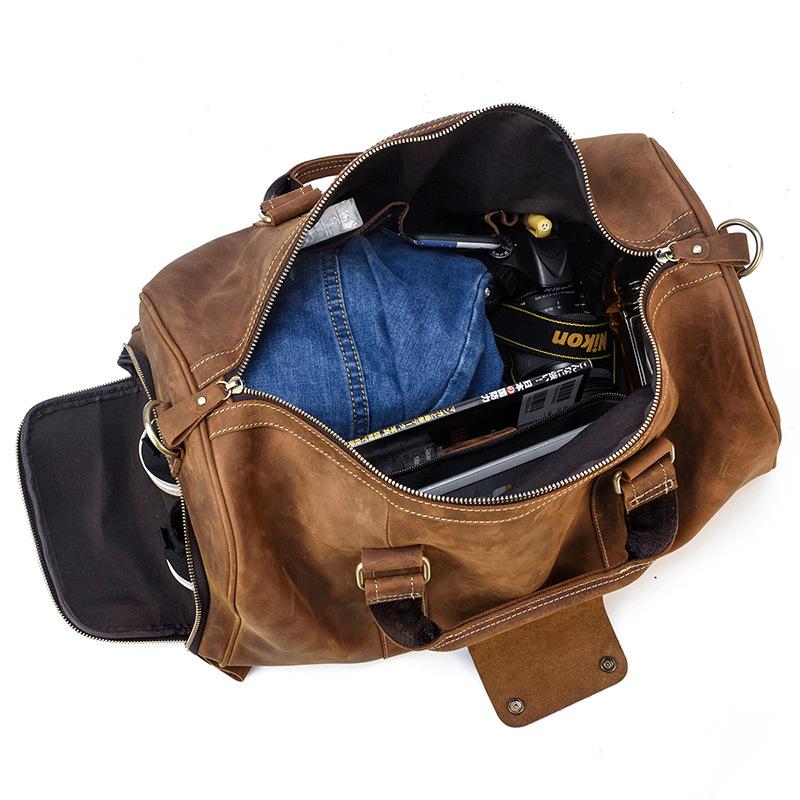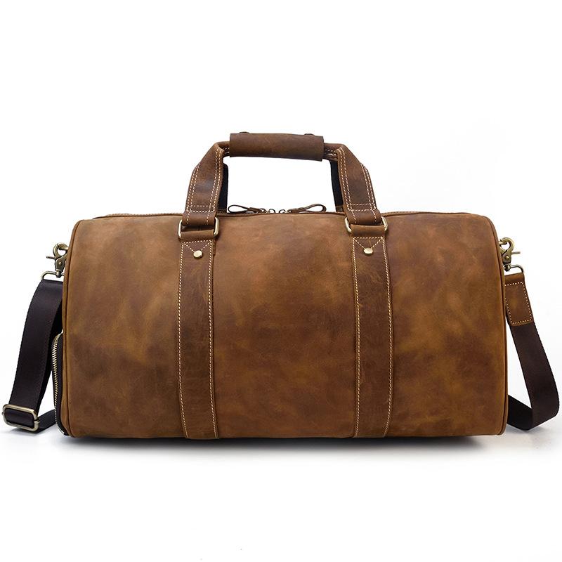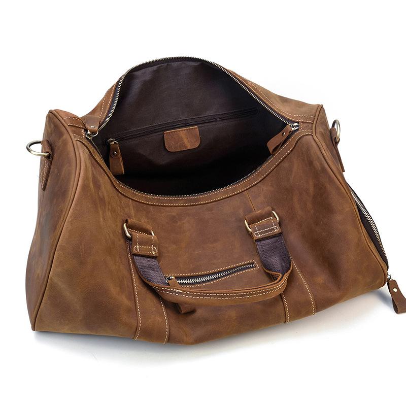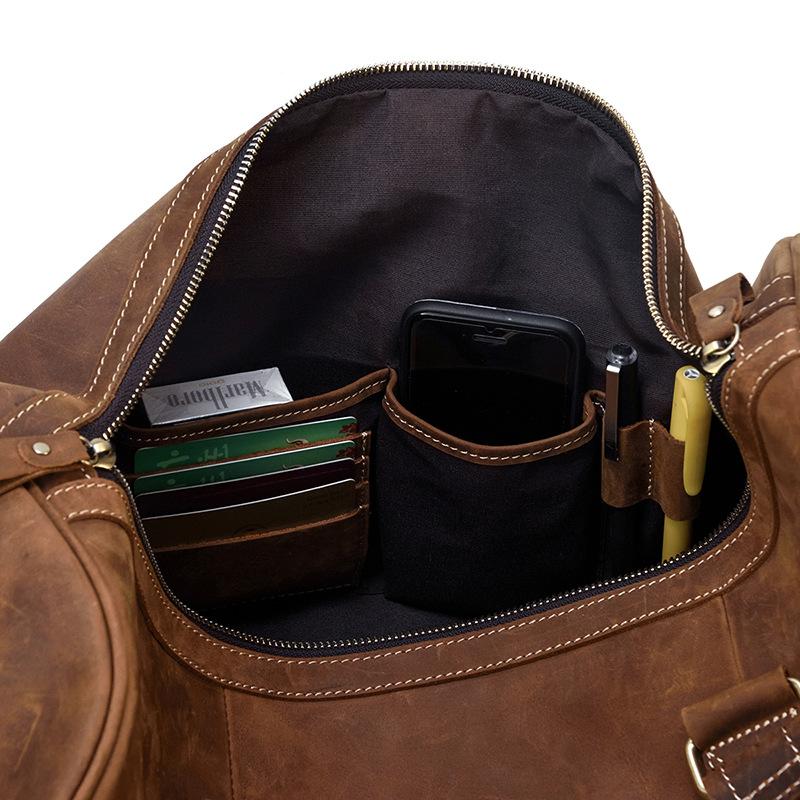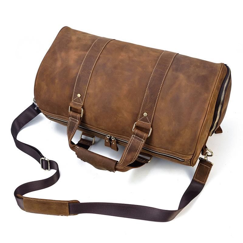 Cool Brown Leather Men's Overnight Bag Large Travel Bag Duffel Bag Weekender Bag For Men