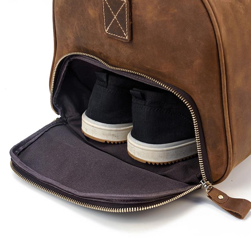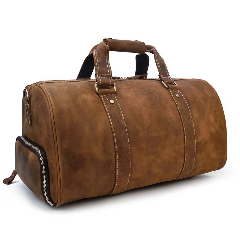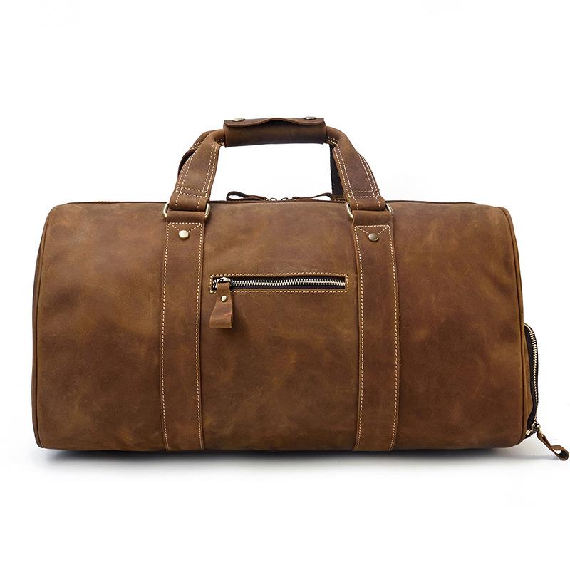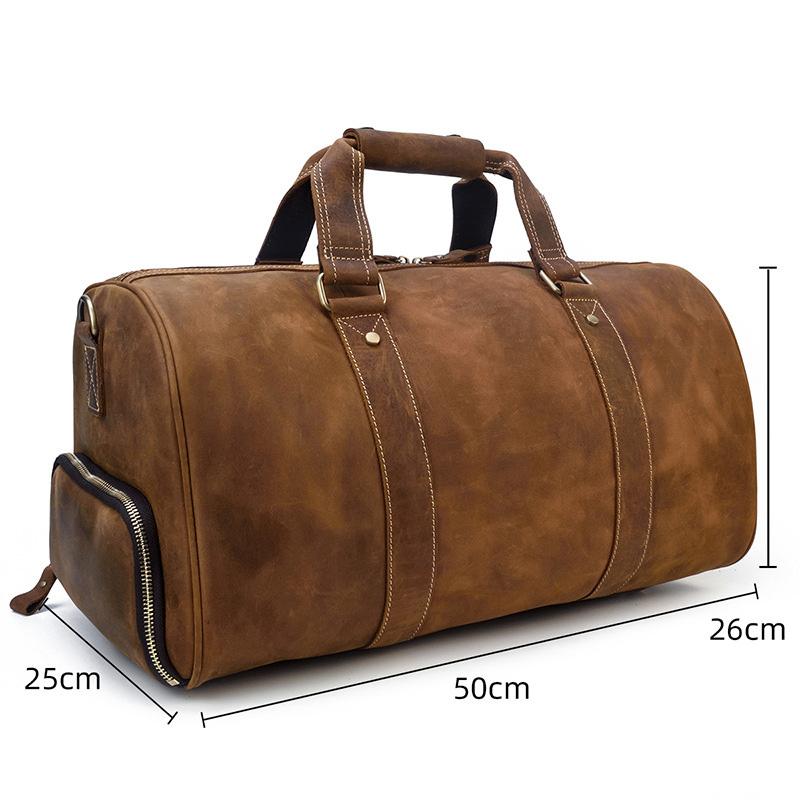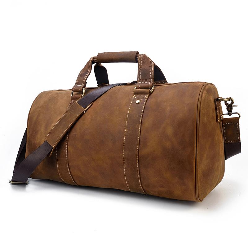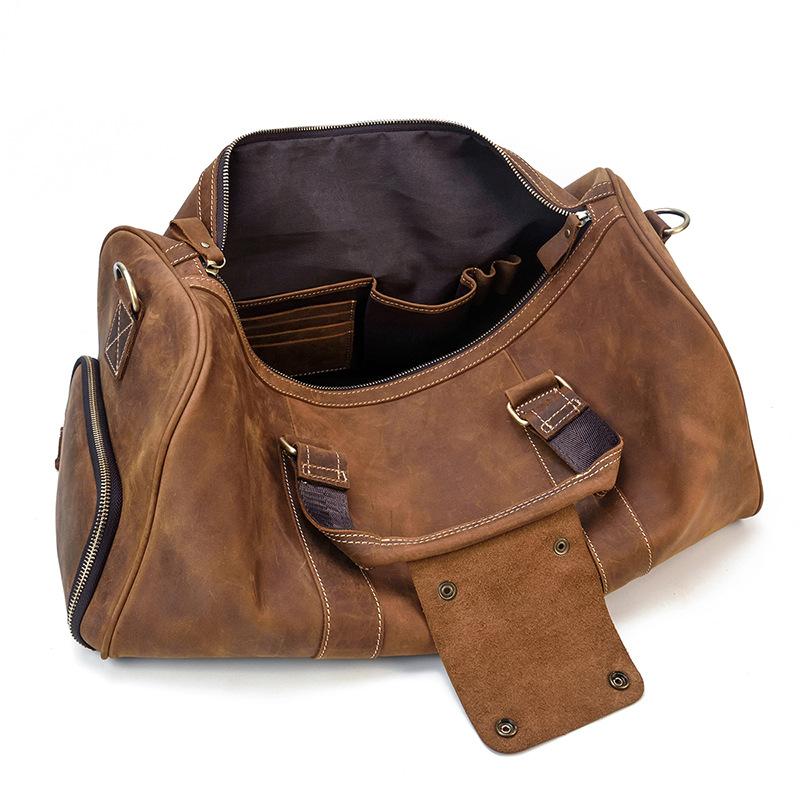 Cool Brown Leather Men's Overnight Bag Large Travel Bag Duffel Bag Weekender Bag For Men