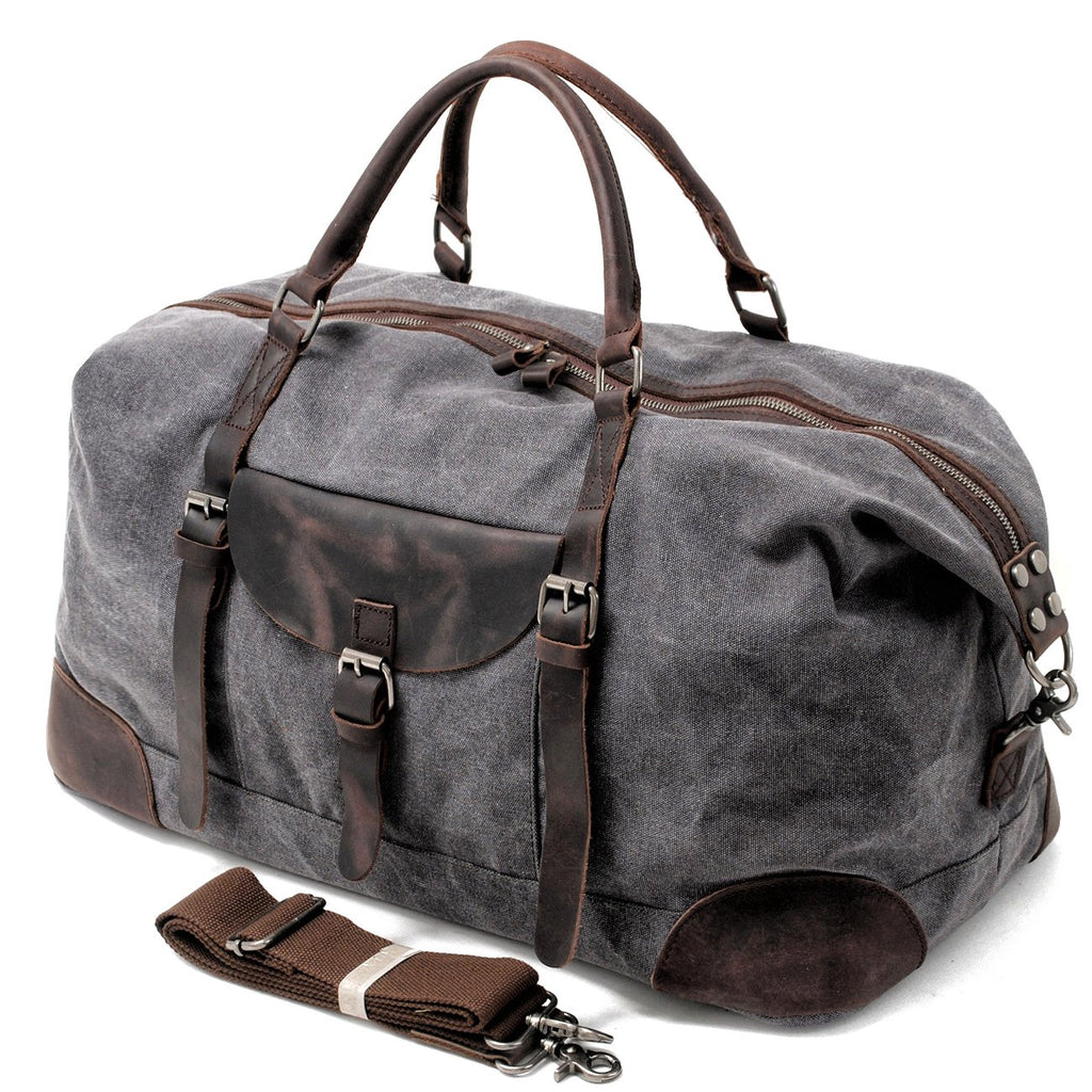 Style: Cool Waxed Canvas Leather Mens Large Travel Weekender Bag Waterproof Duffle bag for Men
