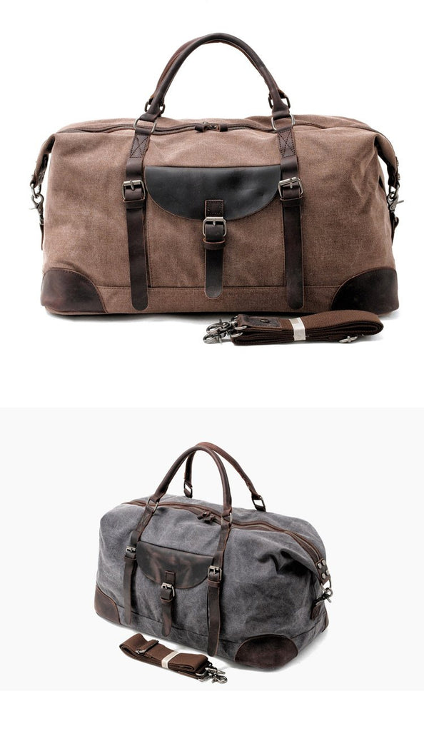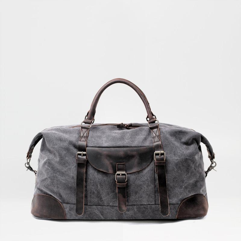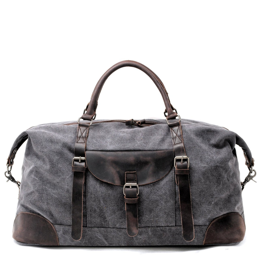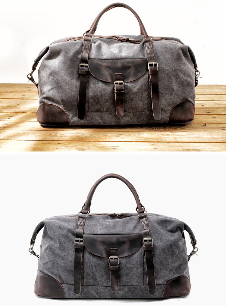Design: Cool Waxed Canvas Leather Mens Large Travel Weekender Bag Waterproof Duffle bag for Men