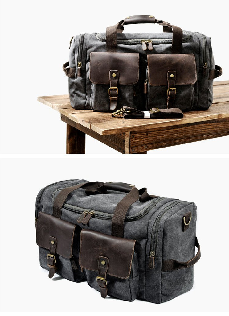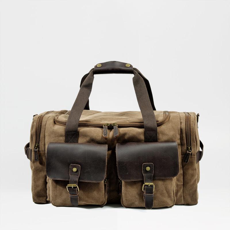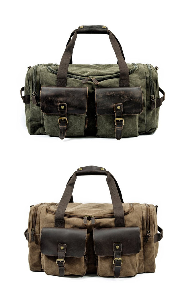 Design: Cool Canvas Leather Mens Retro Large Green Travel Weekender Bag Duffle Bag for Men