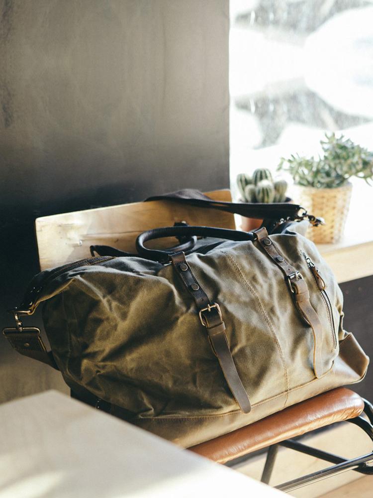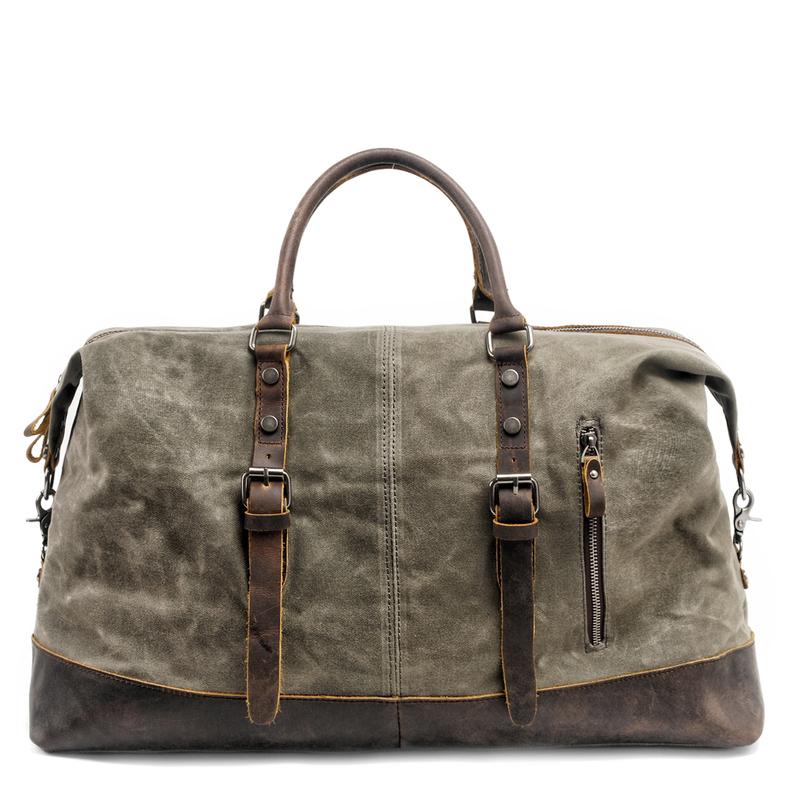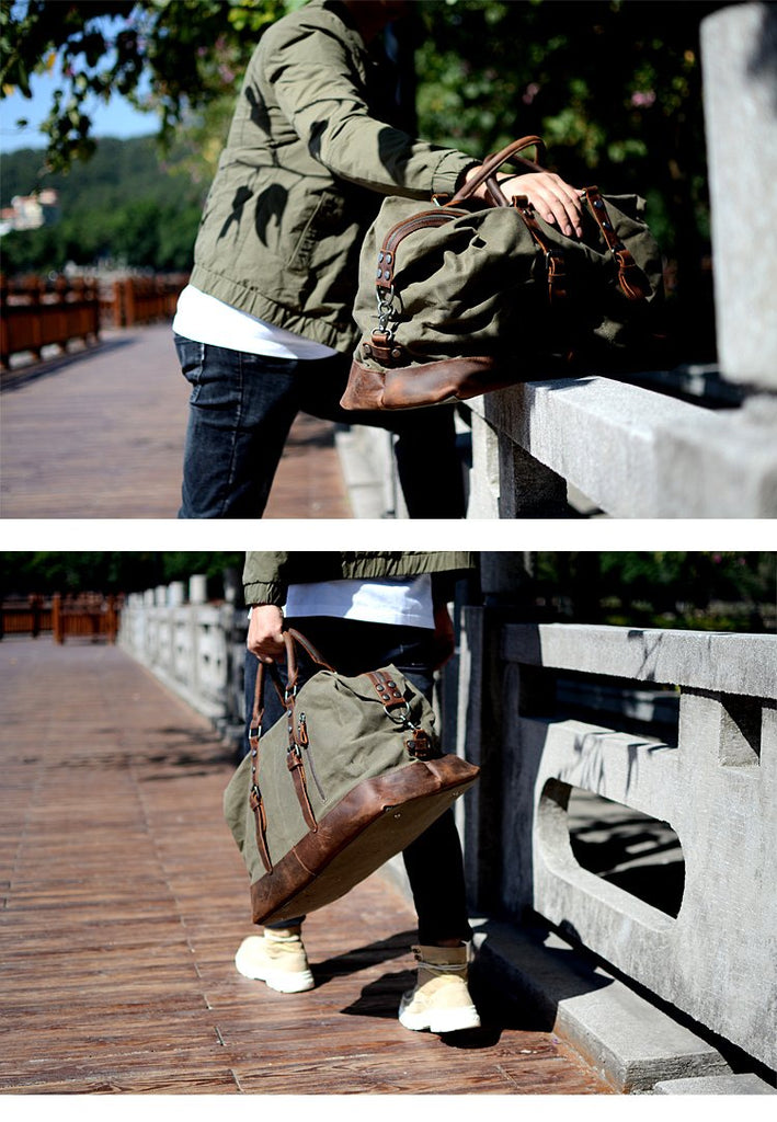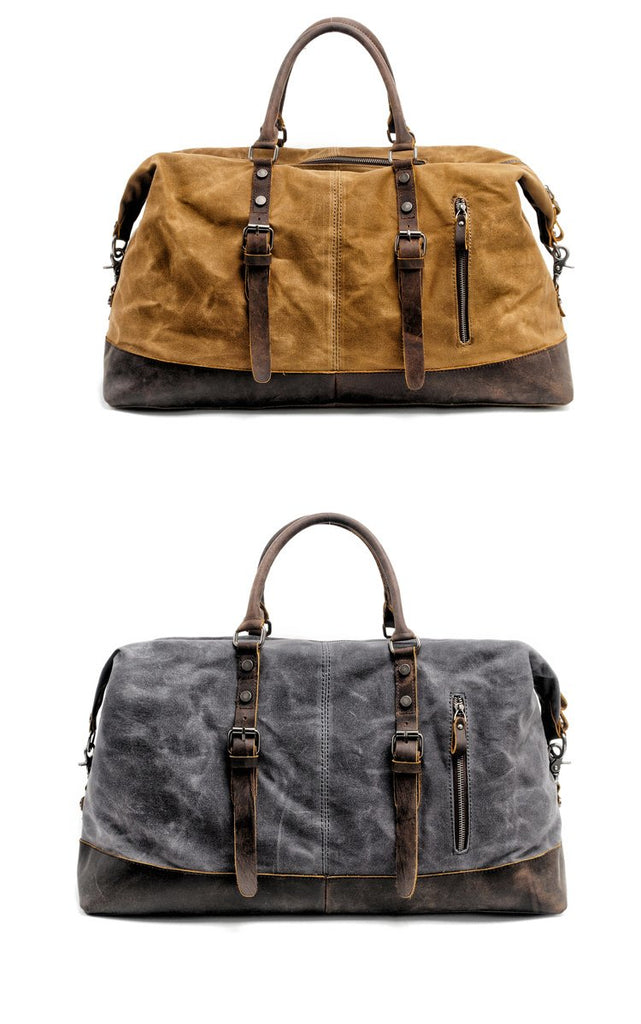 Style: Cool Canvas Leather Mens  Travel Weekender Bag Waterproof Duffle bag for Men