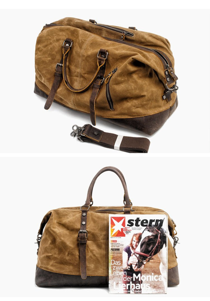 Design: Cool Canvas Leather Mens  Travel Weekender Bag Waterproof Duffle bag for Men