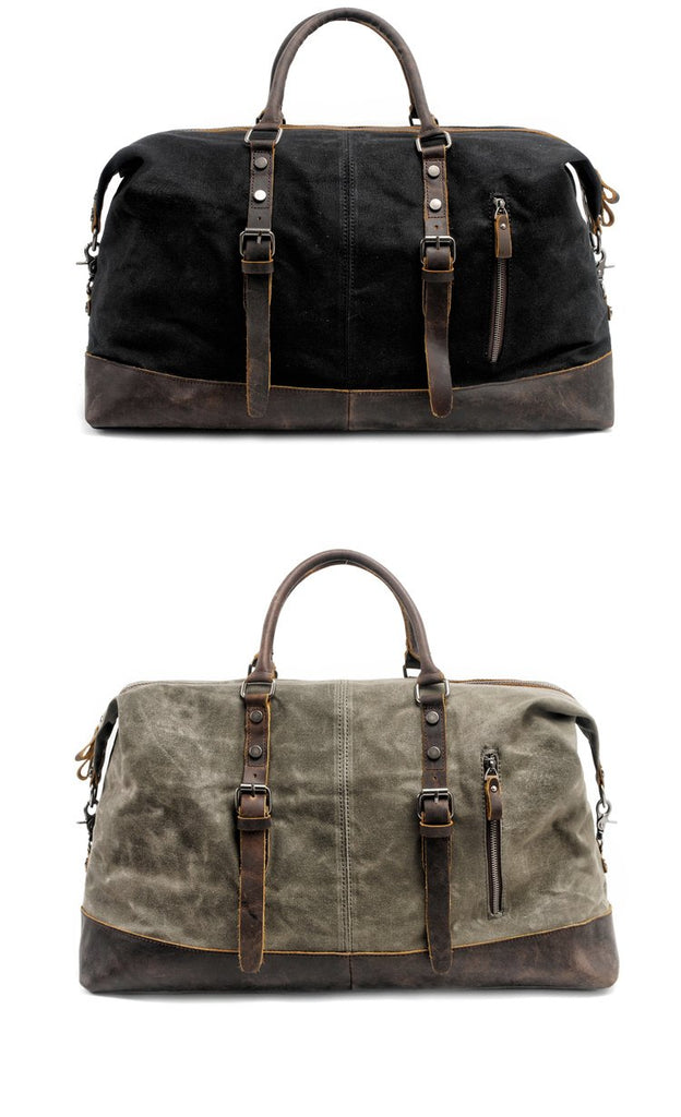Cool Canvas Leather Mens Black Travel Weekender Bag Waterproof Duffle bag for Men