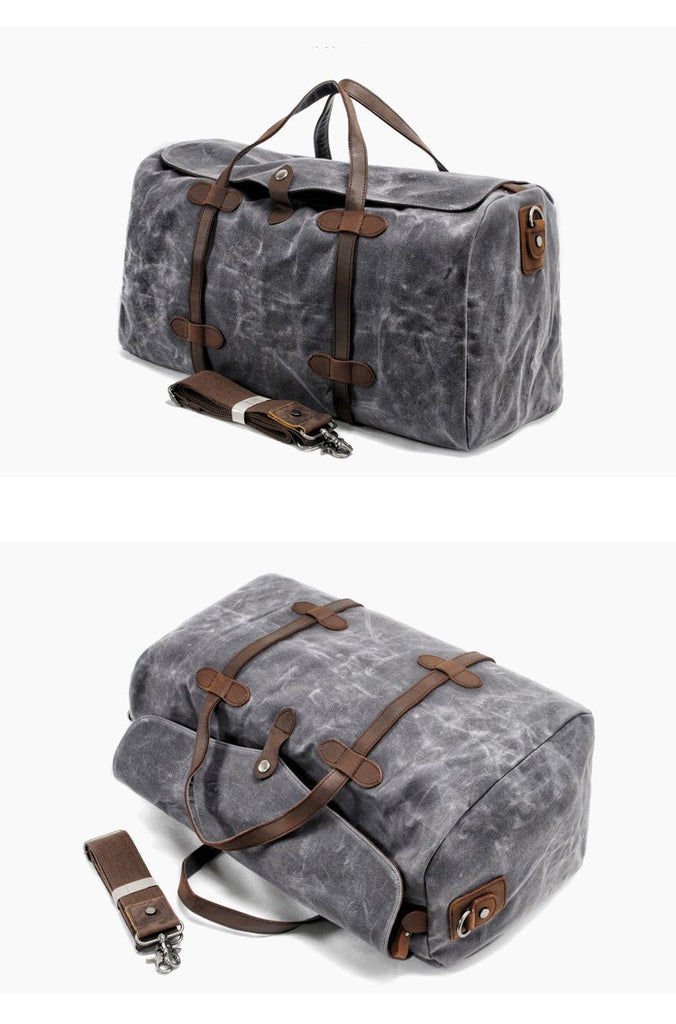 Style: Casual Waxed Canvas Mens Large Travel Waterproof Weekender Bag Shoulder Duffle Bag for Men
