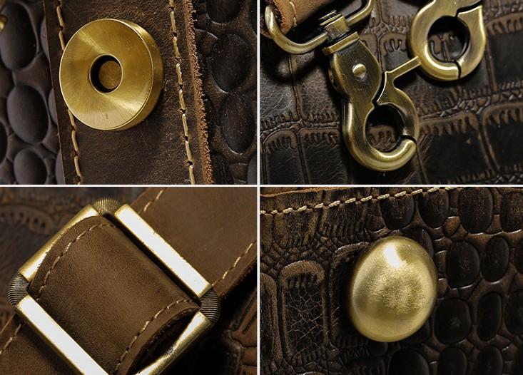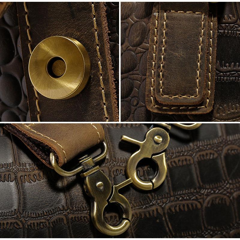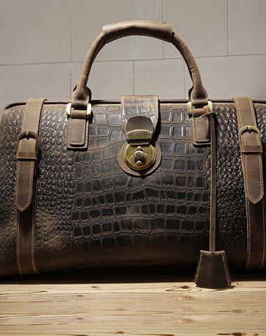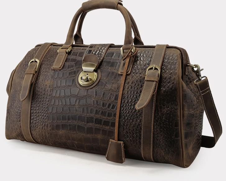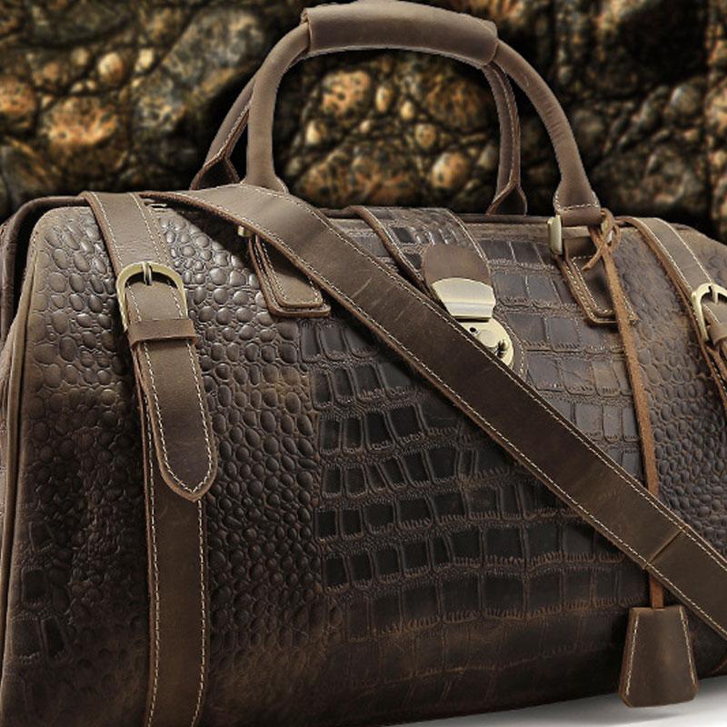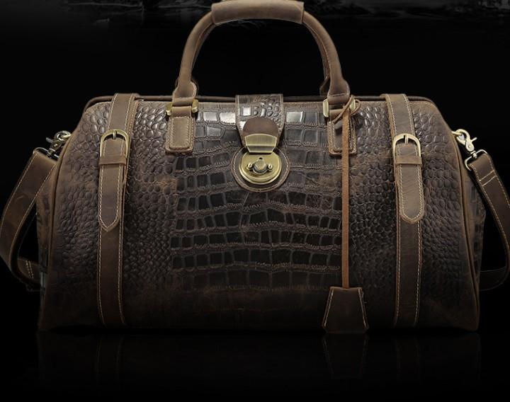Design: Cool Dark Brown Leather Men Alligator Pattern Doctor Bag Travel Bags Weekender Bags For Men