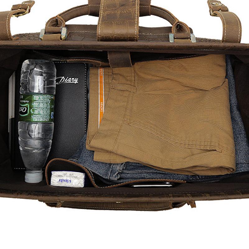 Design: Cool Dark Brown Leather Men Alligator Pattern Doctor Bag Travel Bags Weekender Bags For MenOverview: