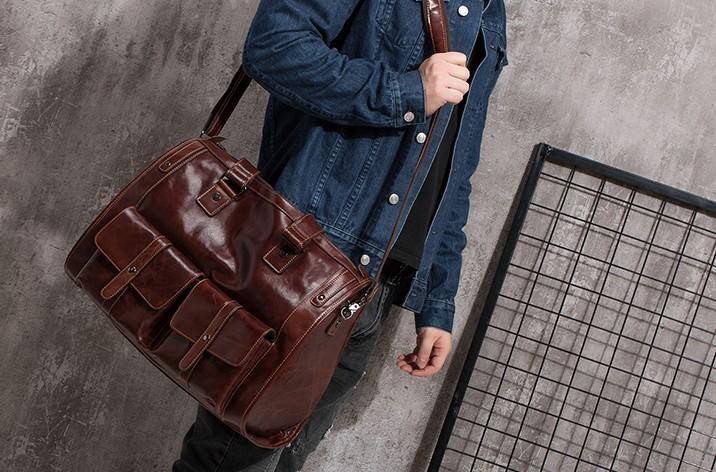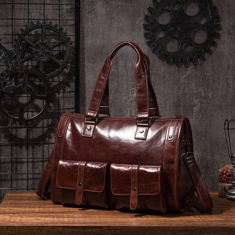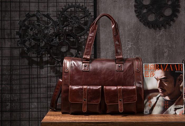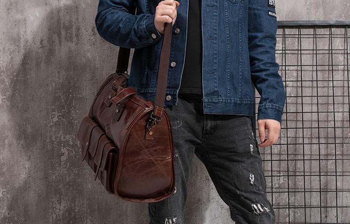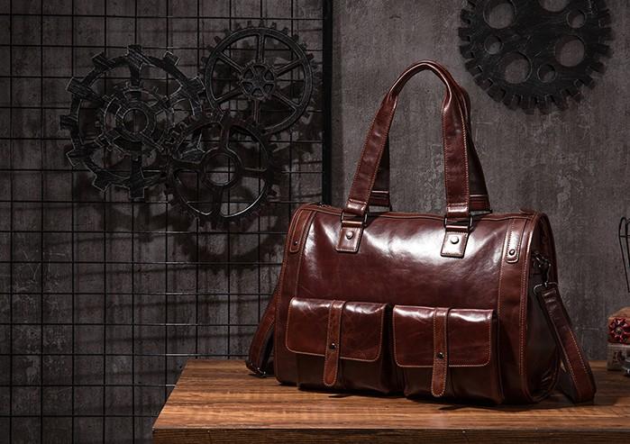 Style: Cool Leather Mens Travel Bag Overnight Bag Work Handbag Business Bag for Men