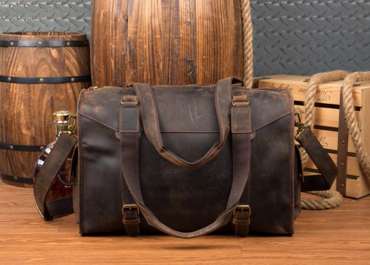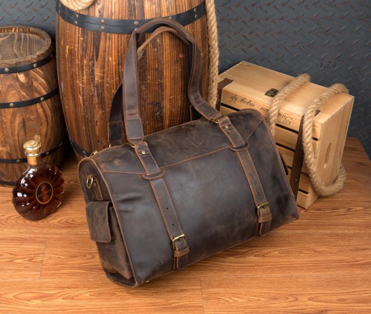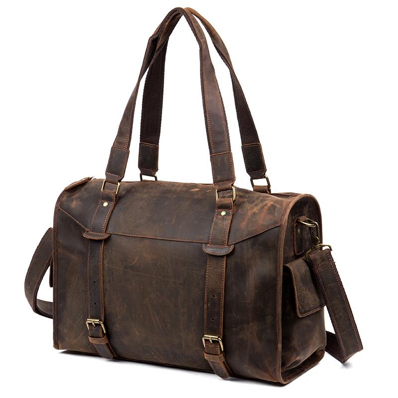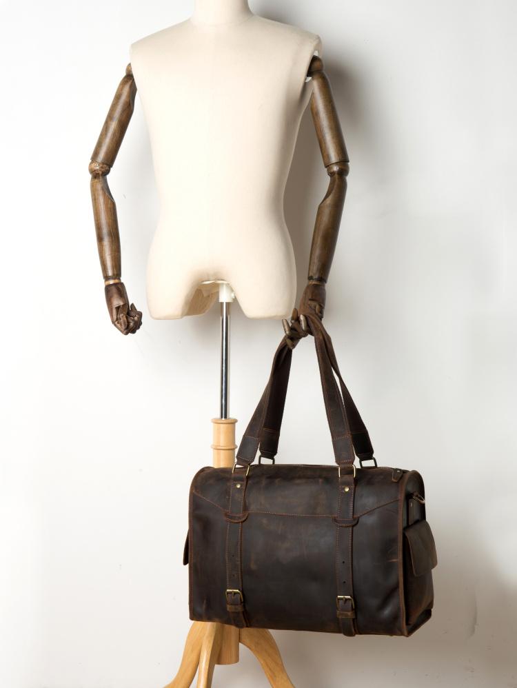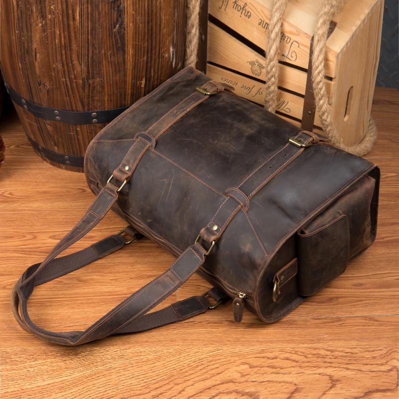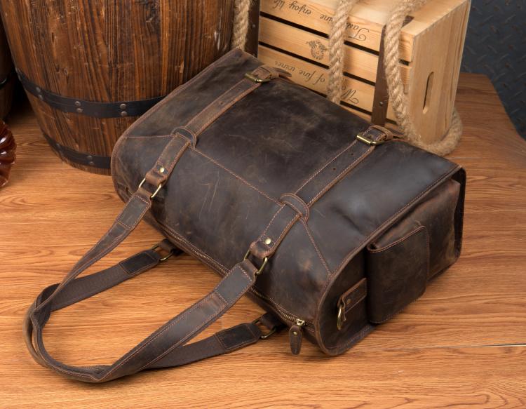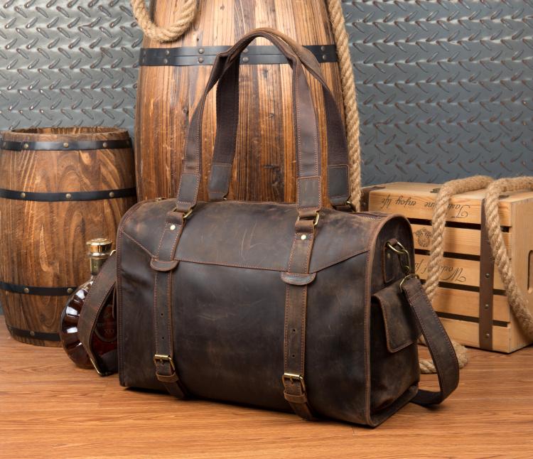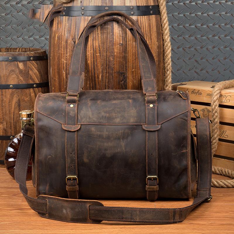 Design: Dark Brown Cool Leather 15 inches Shoulder Bag Travel Bags Handbags Luggage Bag for Men