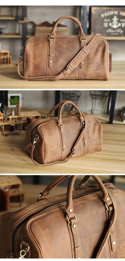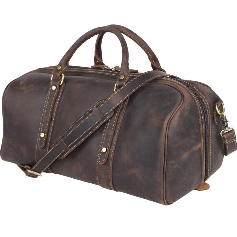 Design: Dark Brown Leather Mens Casual Large Travel Bag 16" Shoulder Weekender Bag Duffle Bag For Men