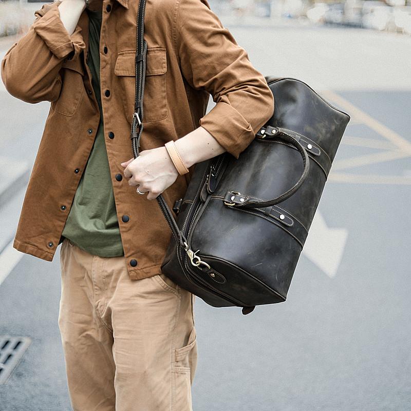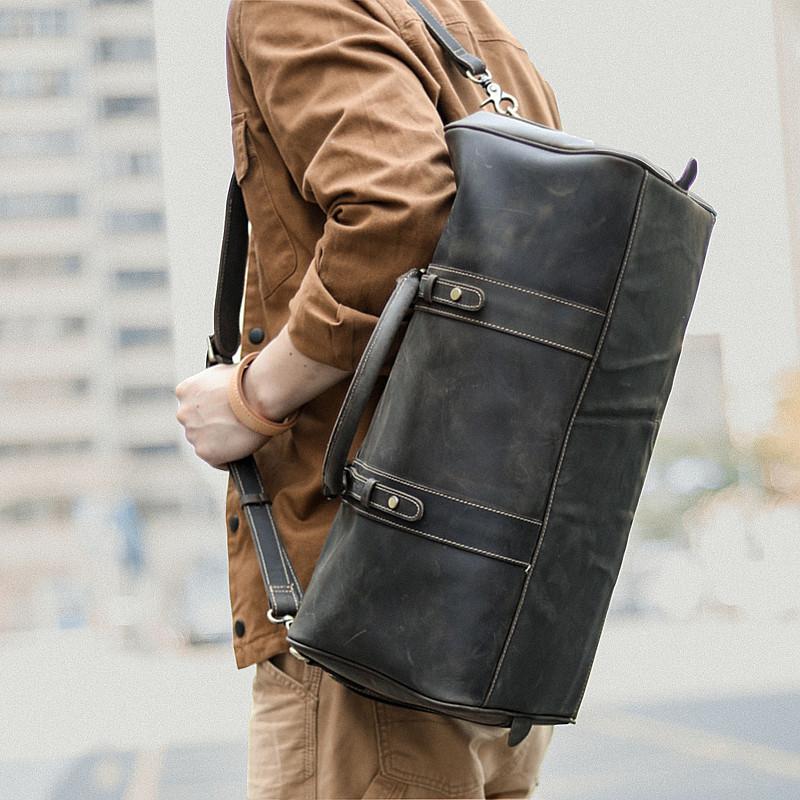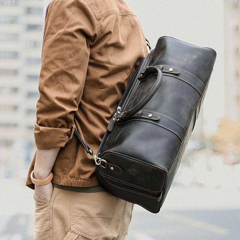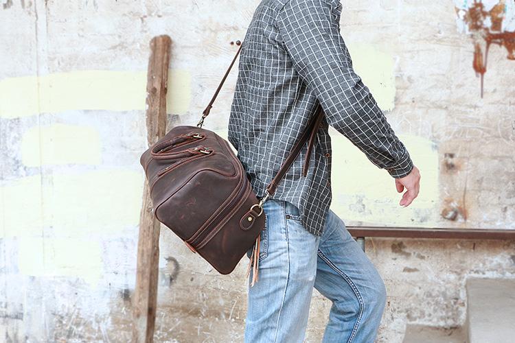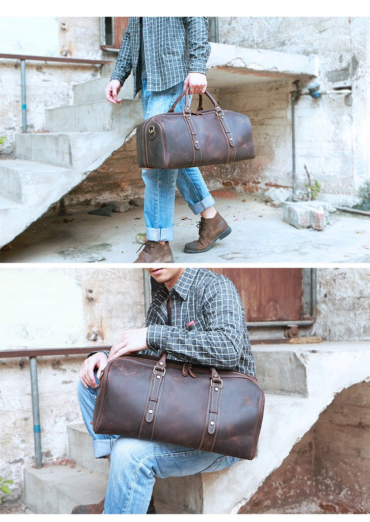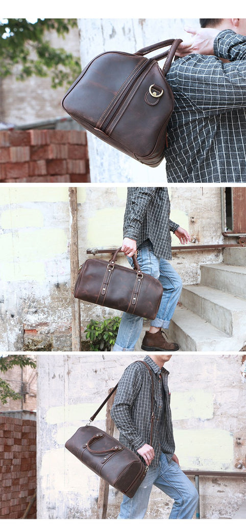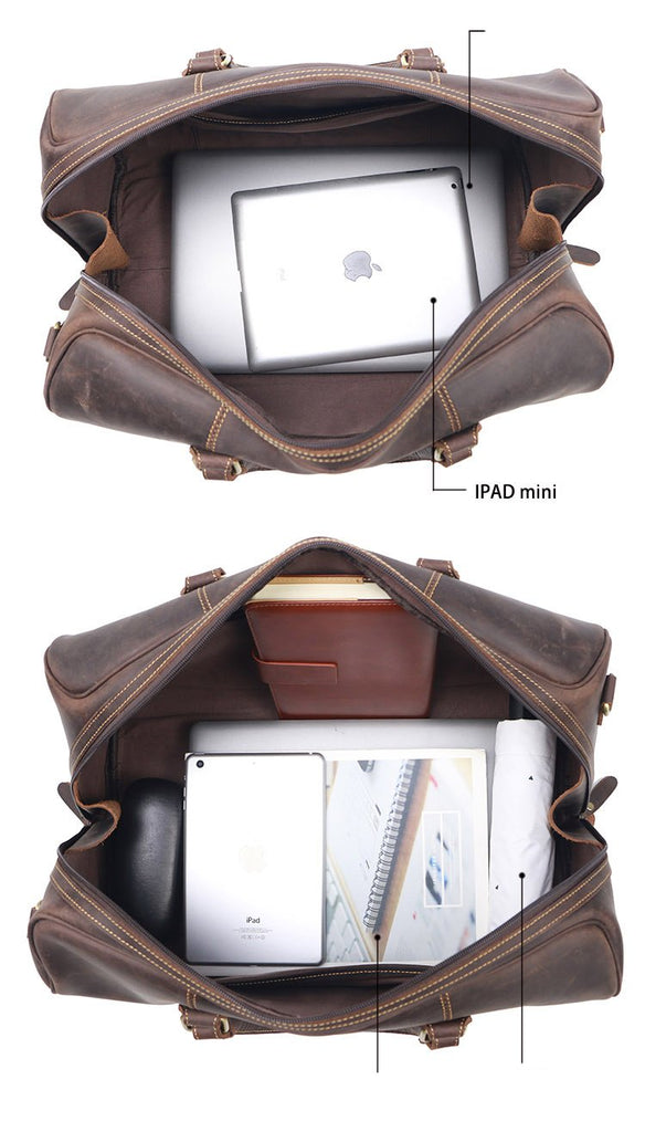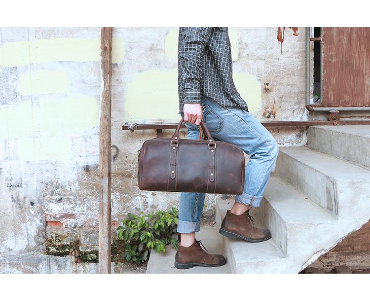 Dark Brown Leather Mens Casual Large Travel Bag 16" Shoulder Weekender Bag Duffle Bag For Men