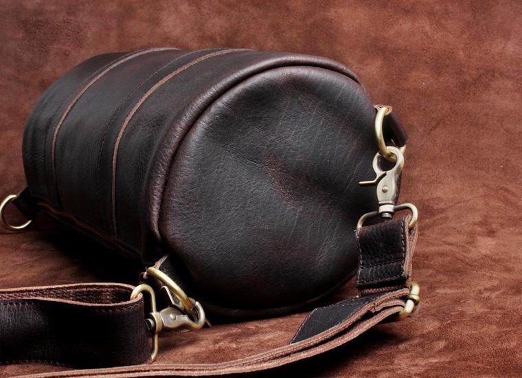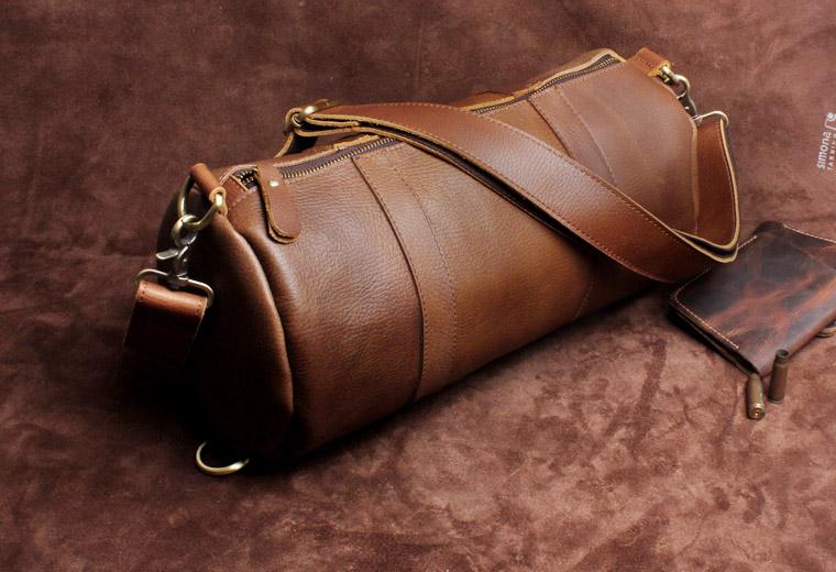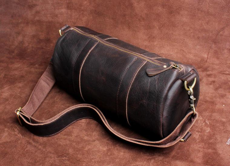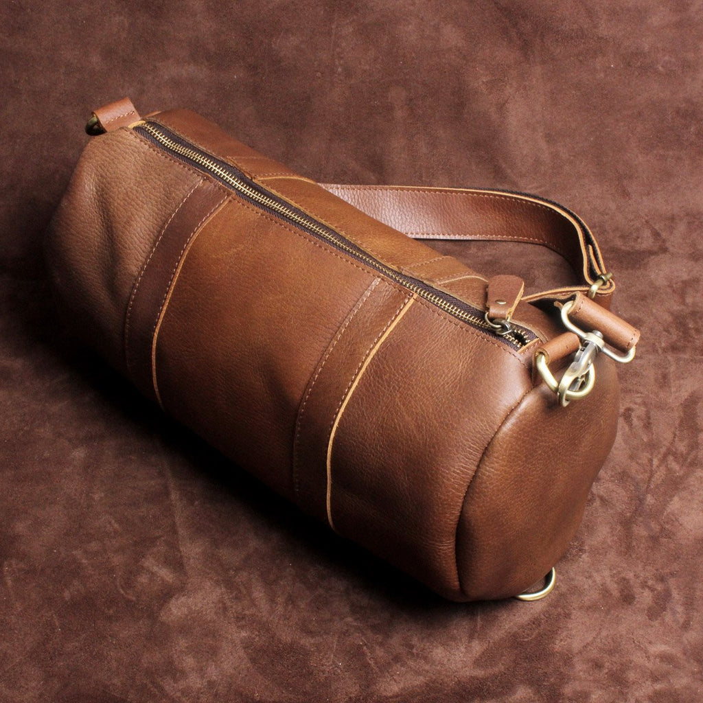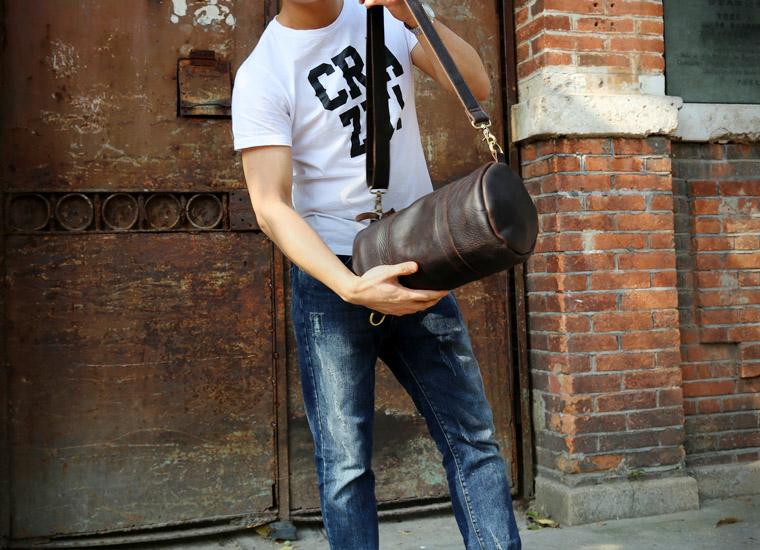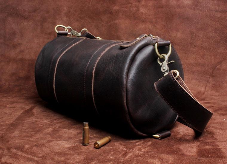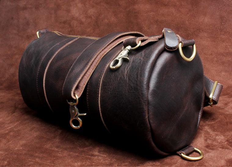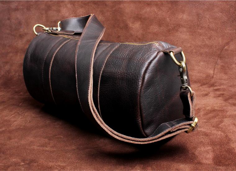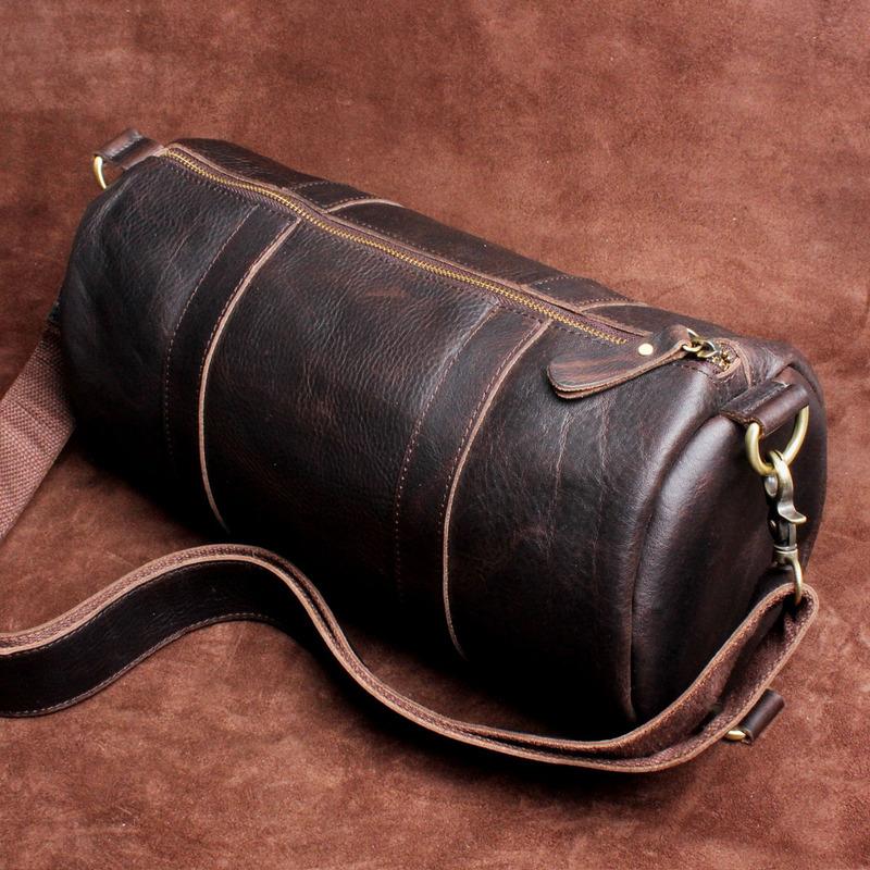 Design: Genuine Leather Mens Bucket Bag Round Circle Bag Cool Weekender Bag Travel Bag Duffle Bags Overnight Bag Holdall Bag for men