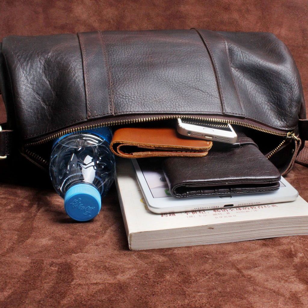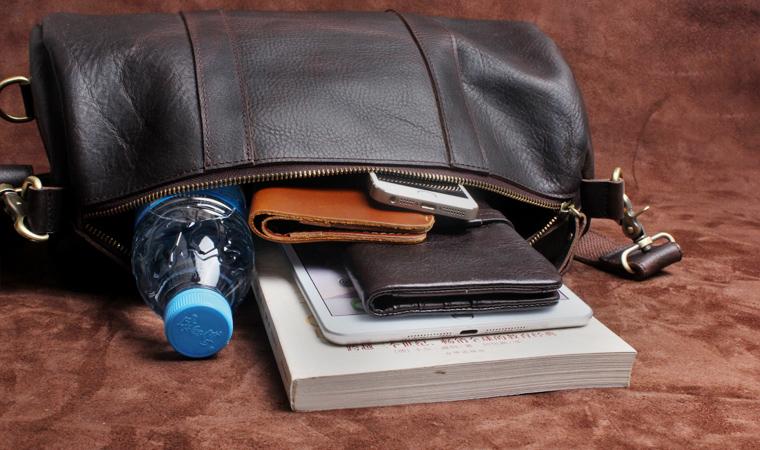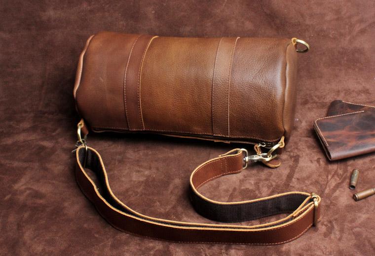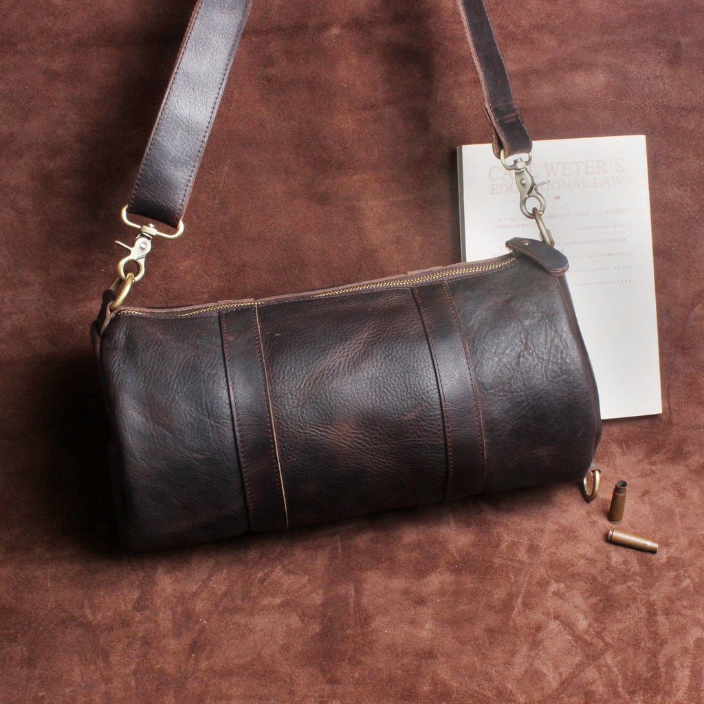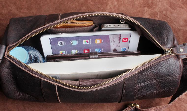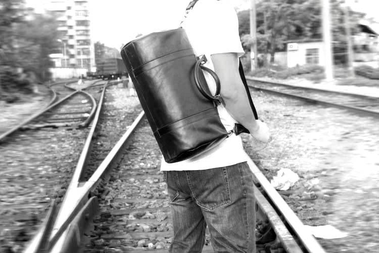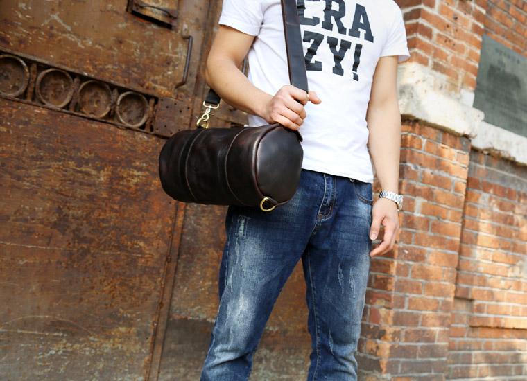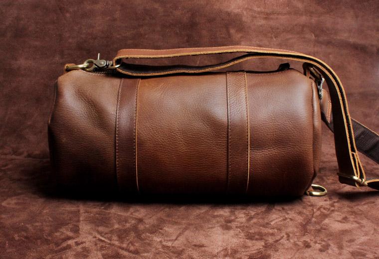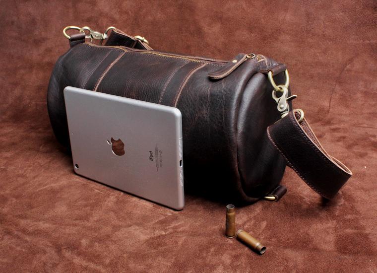 Design: Genuine Leather Mens Bucket Bag Round Circle Bag Cool Weekender Bag Travel Bag Duffle Bags Overnight Bag Holdall Bag for men