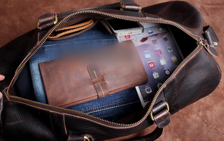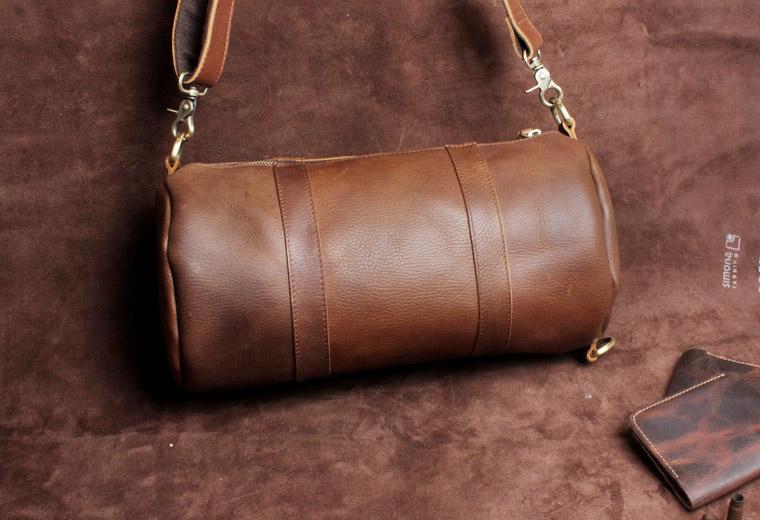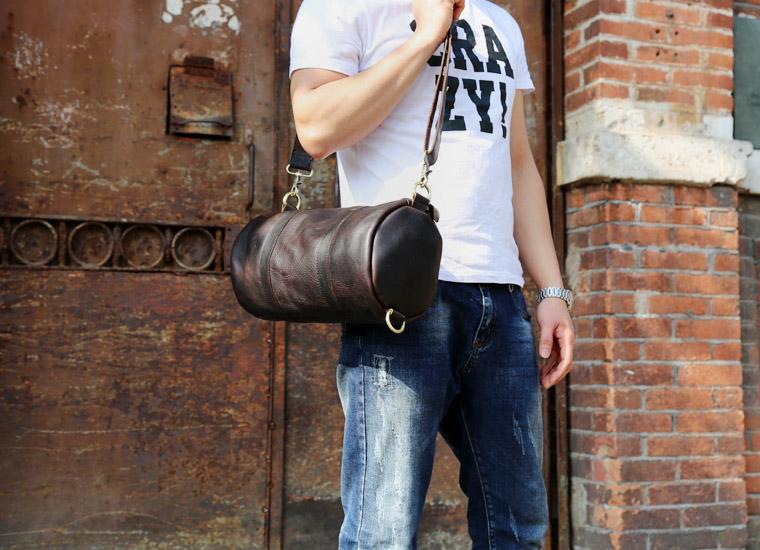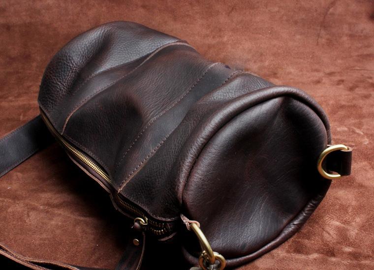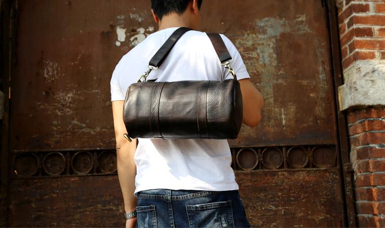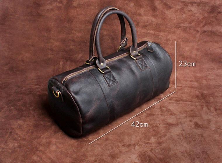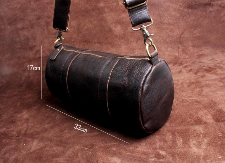 Style: Genuine Leather Mens Bucket Bag Round Circle Bag Cool Weekender Bag Travel Bag Duffle Bags Overnight Bag Holdall Bag for men