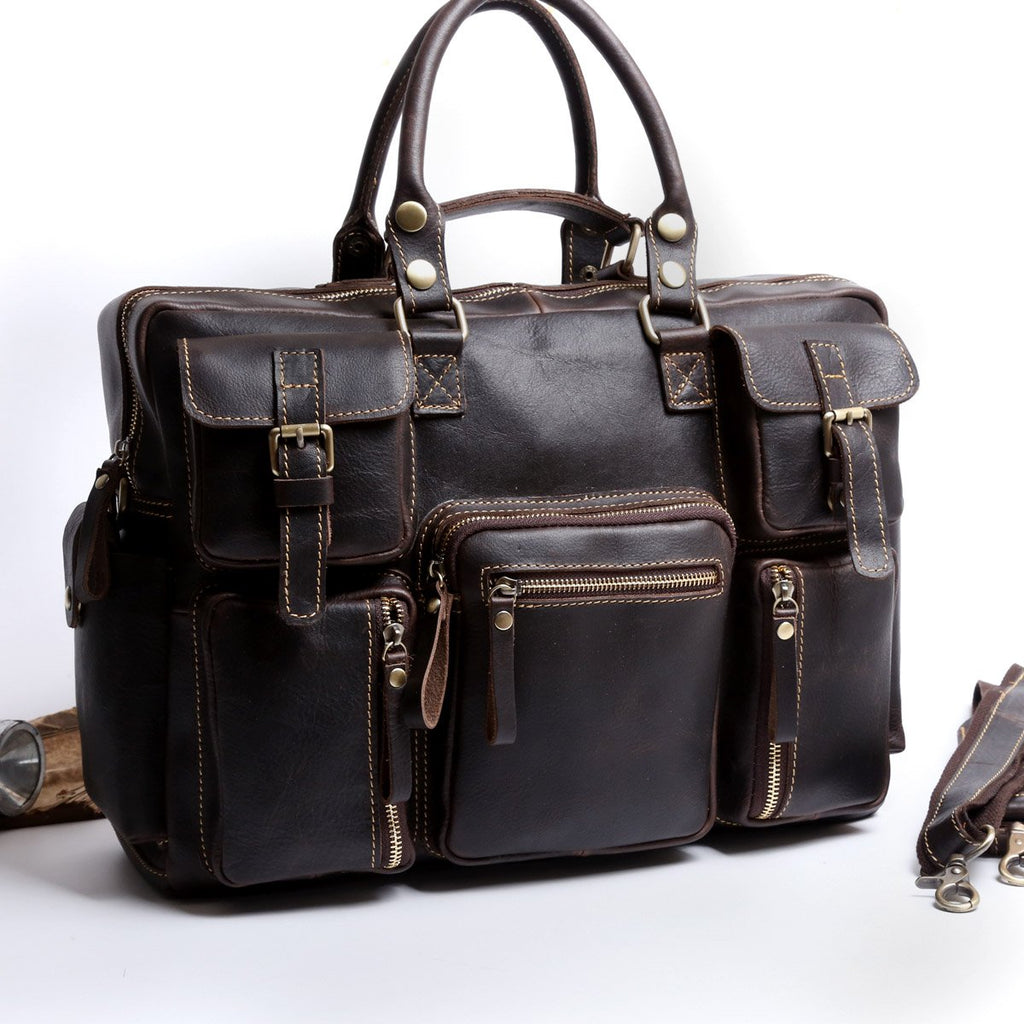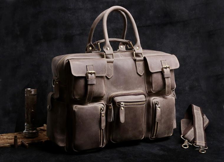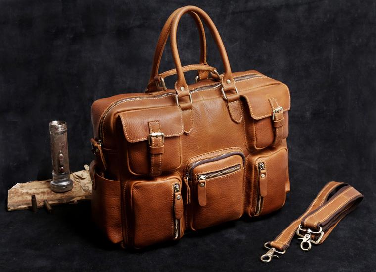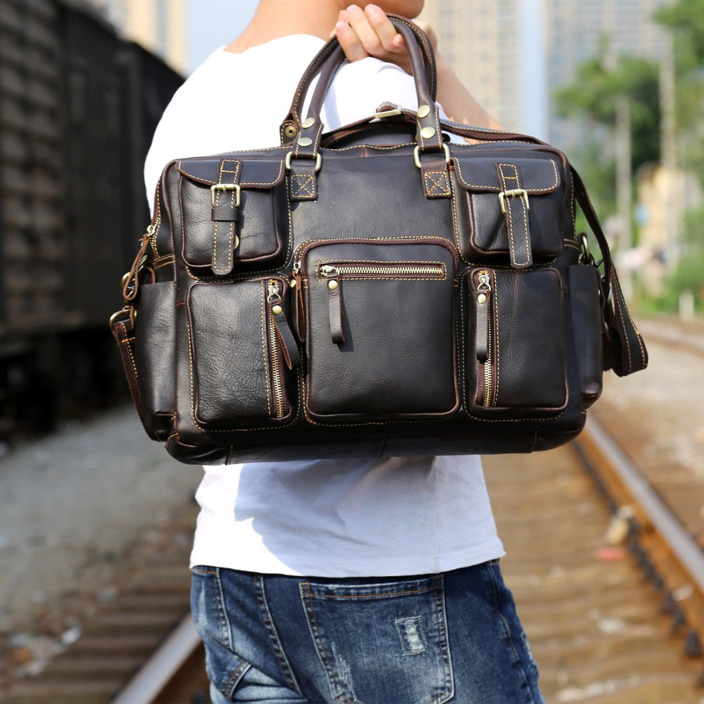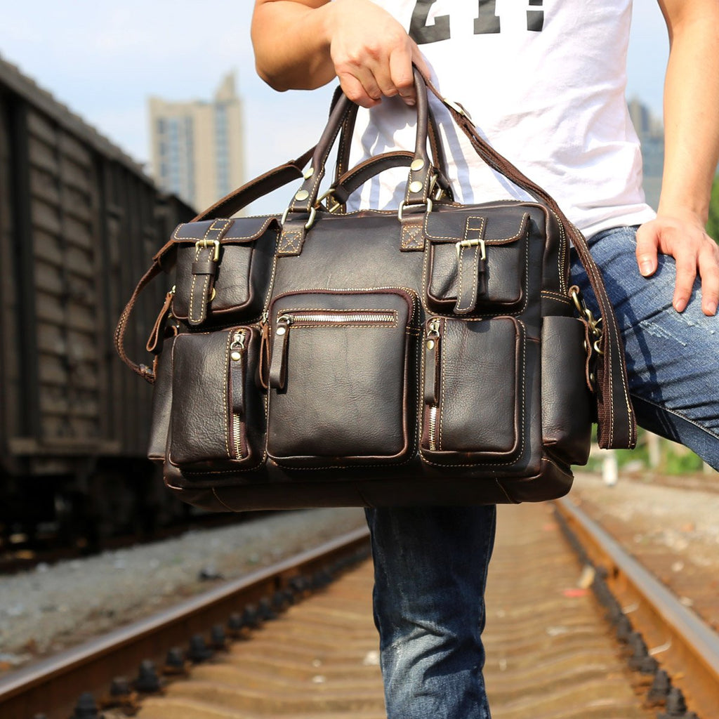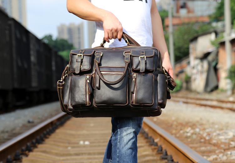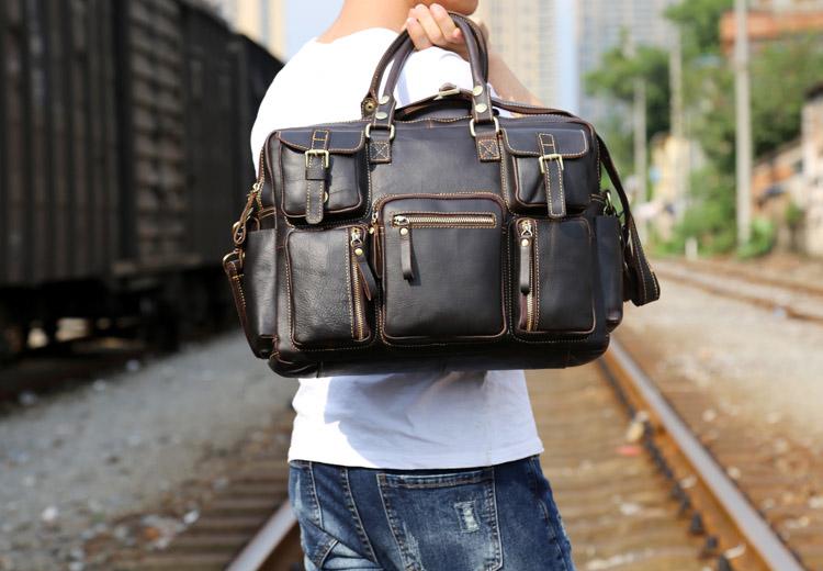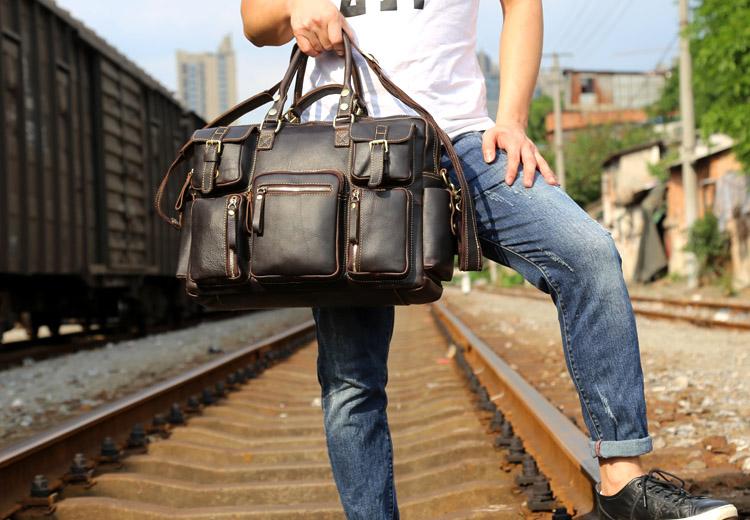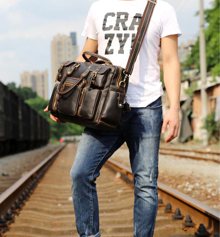Style: Genuine Leather Mens Cool Weekender Bag Travel Bag Duffle Bags Briefcase Messenger Bag for men