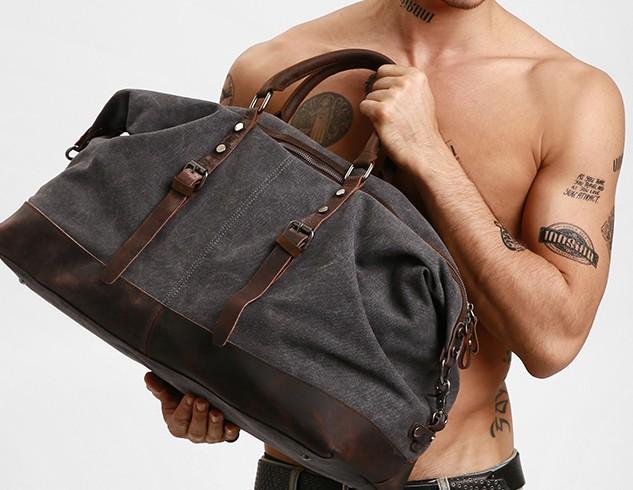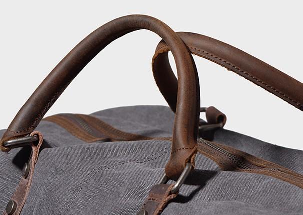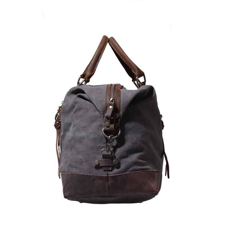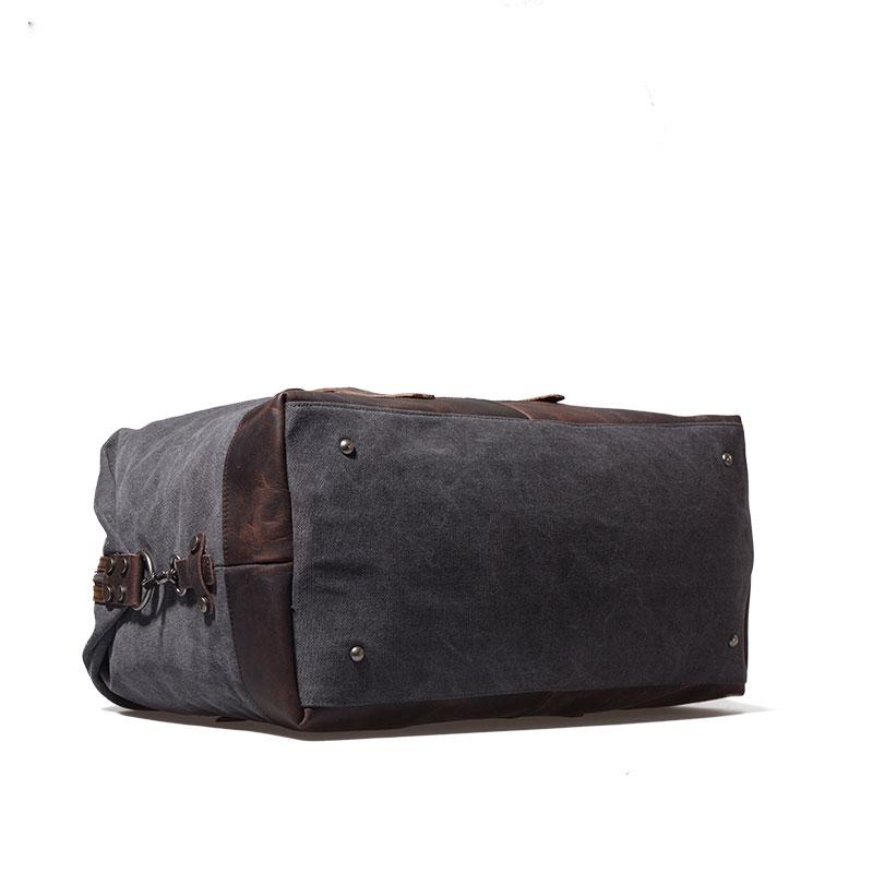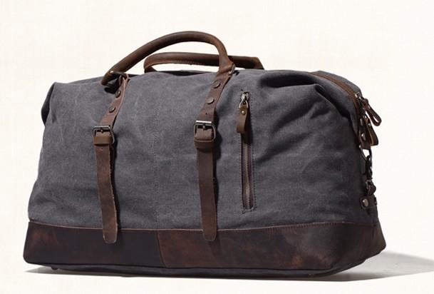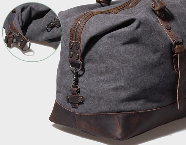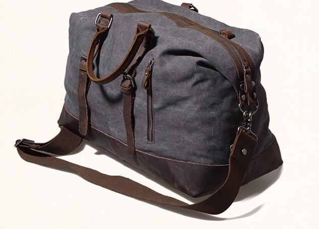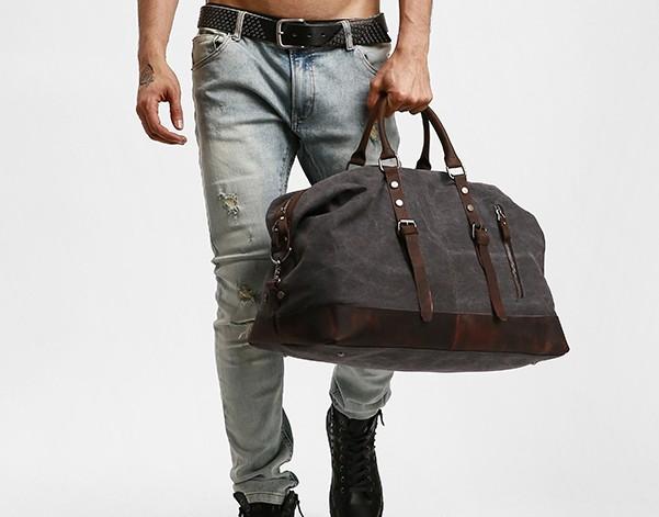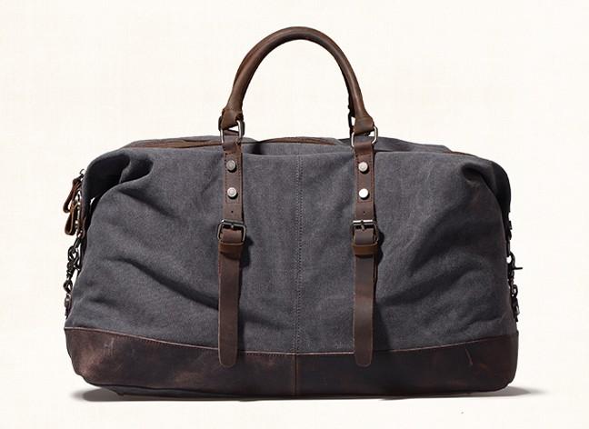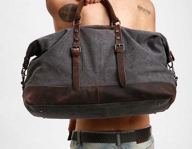 Design: Gray Mens Leather Canvas Large Weekender Bag Canvas Travel Bag for Men