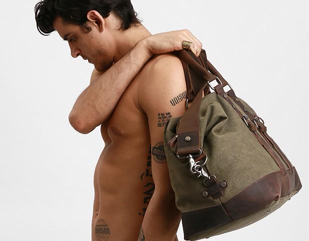 Style: Mens Leather Canvas Large Weekender Bag Canvas Travel Bag for Men