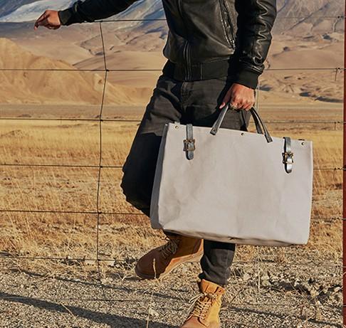 Design: Mens Leather Canvas Large Handbag Canvas Weekender Bag Canvas Travel Bag for Men