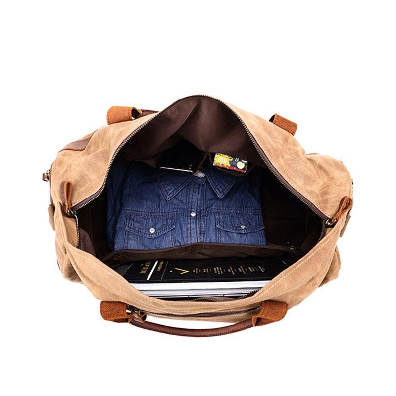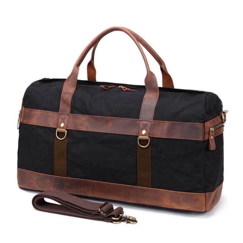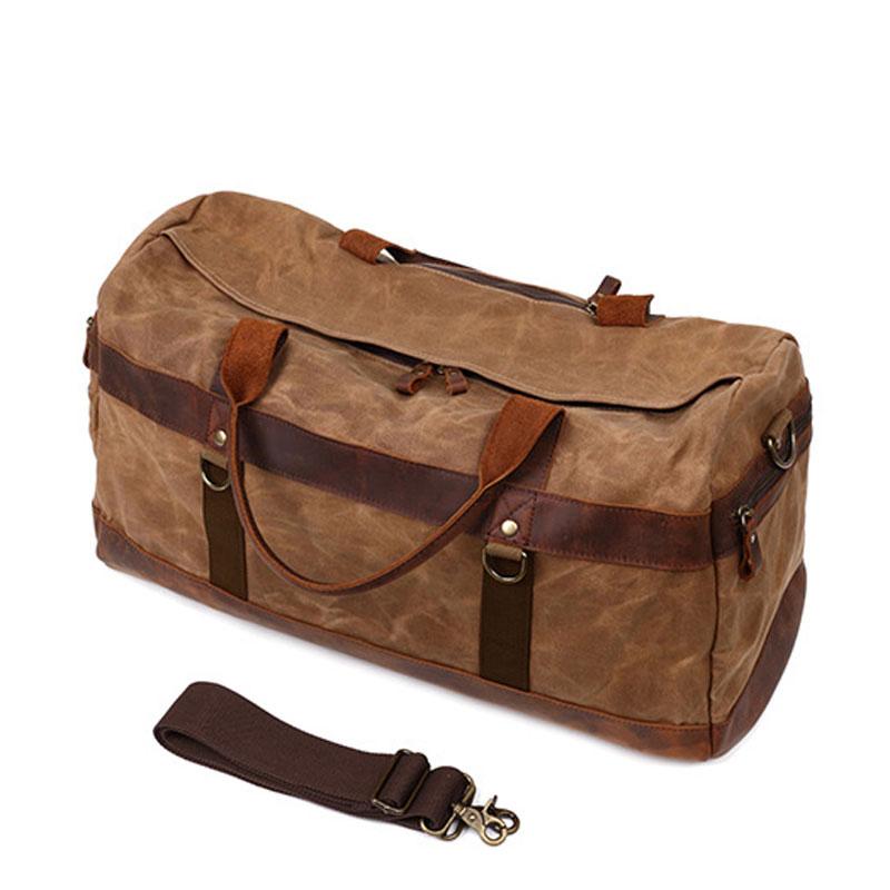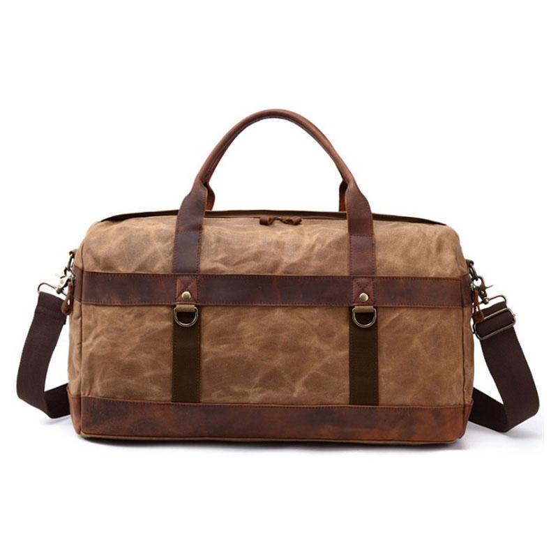 Mens Waxed Canvas Leather Weekender Bag Canvas Large Travel Bag for Men
