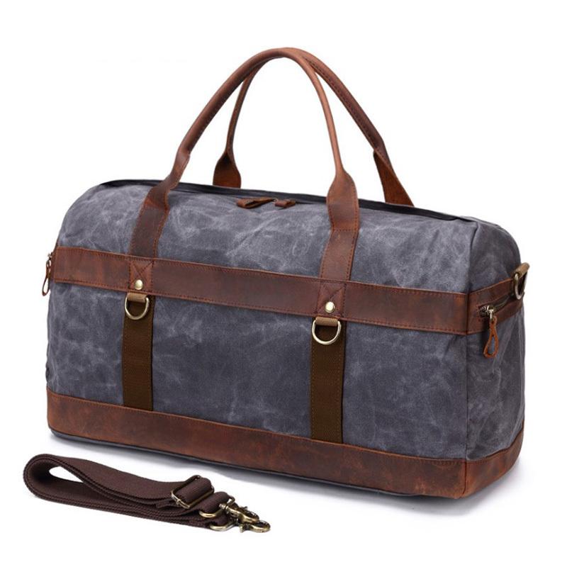 Design: Gray Mens Leather Canvas Large Weekender Bag Canvas Travel Bag for Men