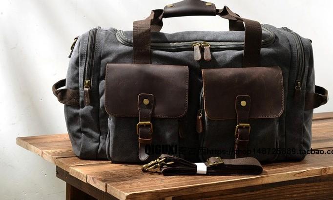 Cool Mens Canvas Leather Side Bag Weekender Bag Canvas Travel Bags for Men
