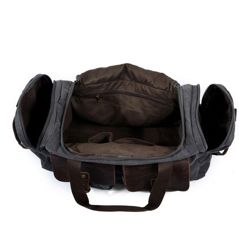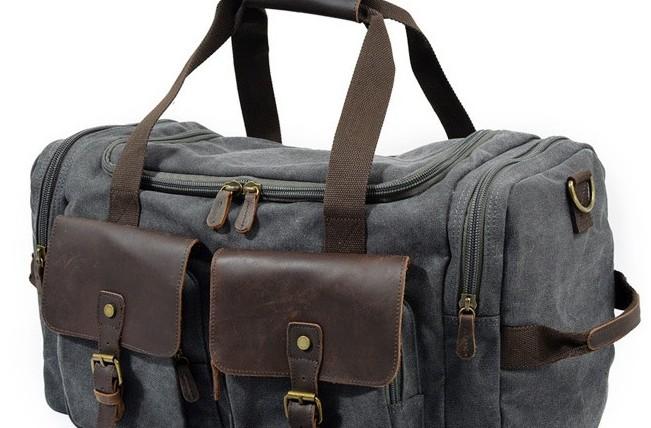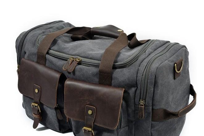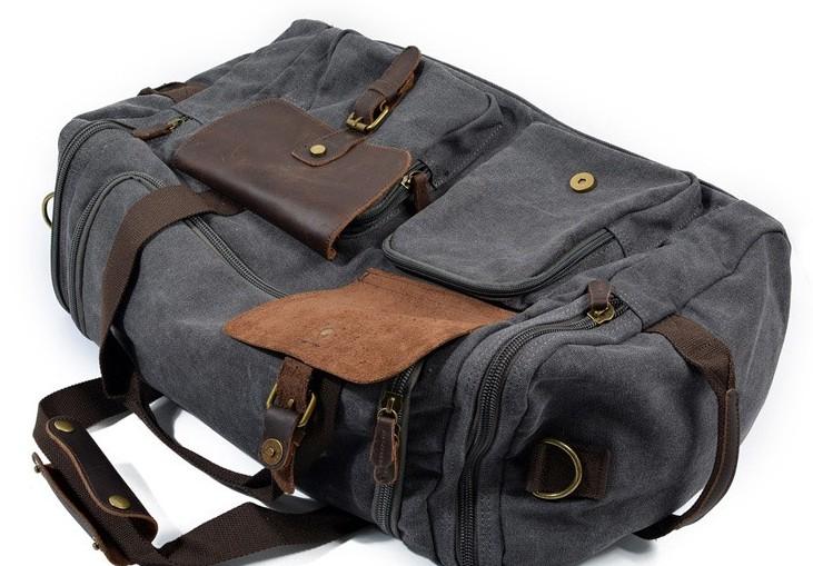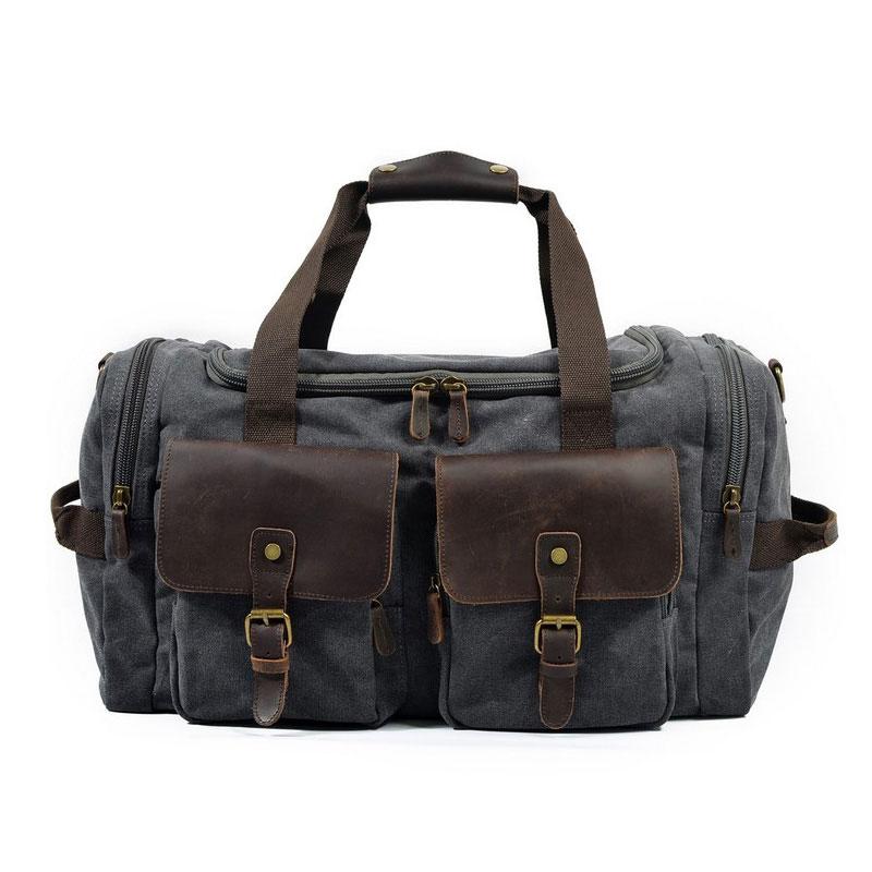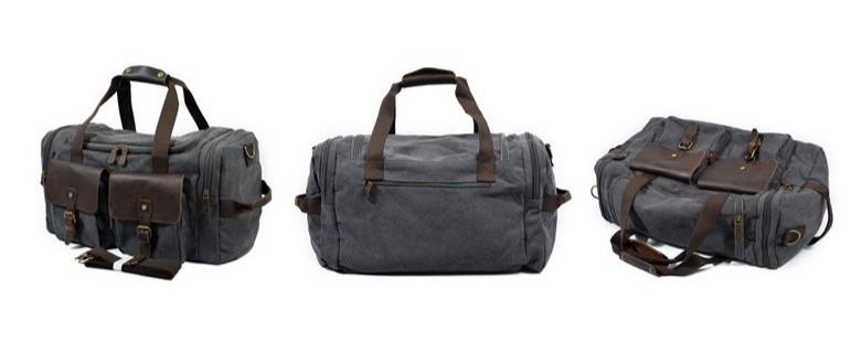 Design: Gray Mens Leather Canvas Large Weekender Bag Canvas Travel Bag for Men
