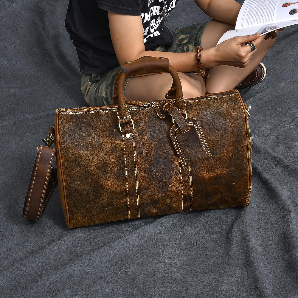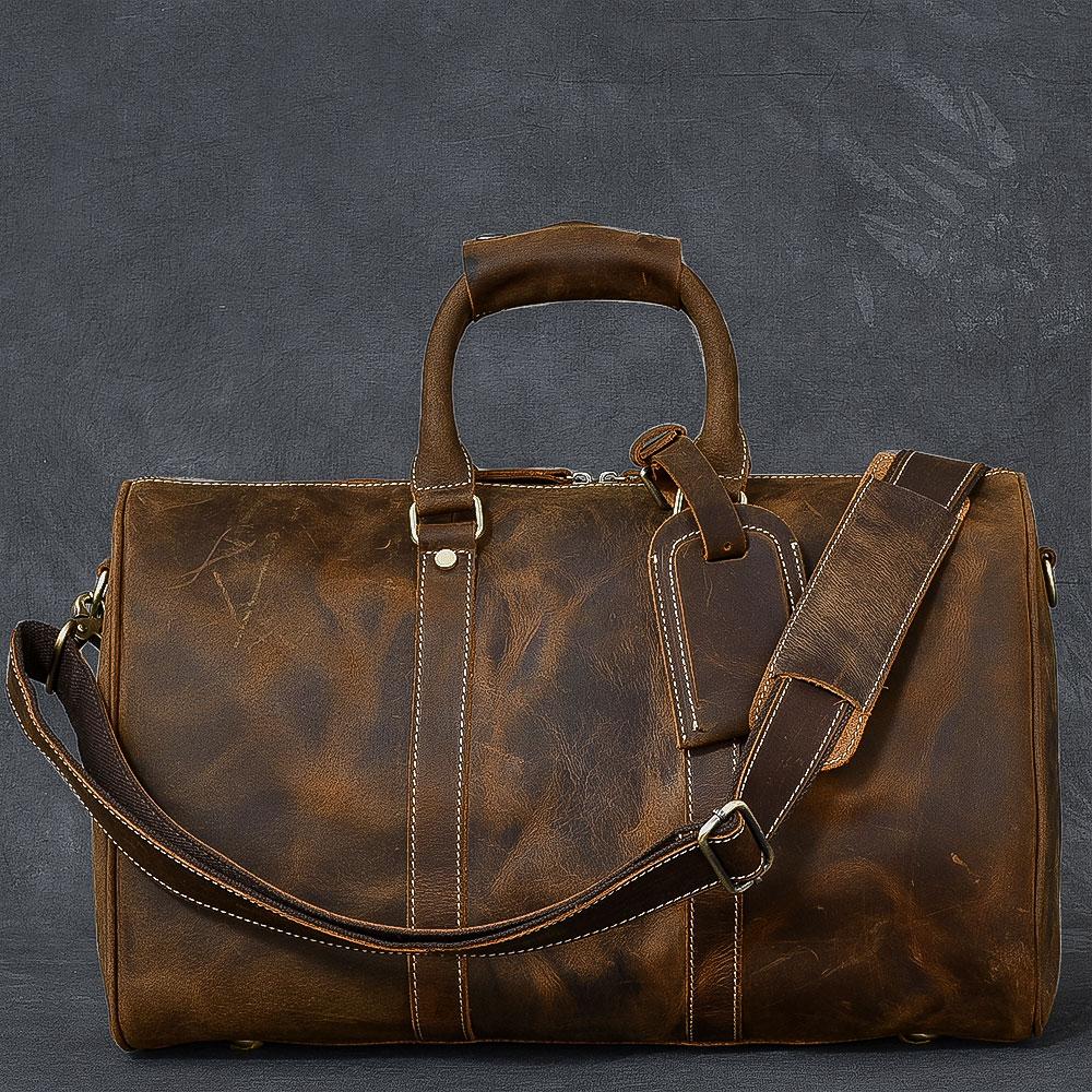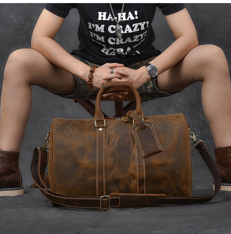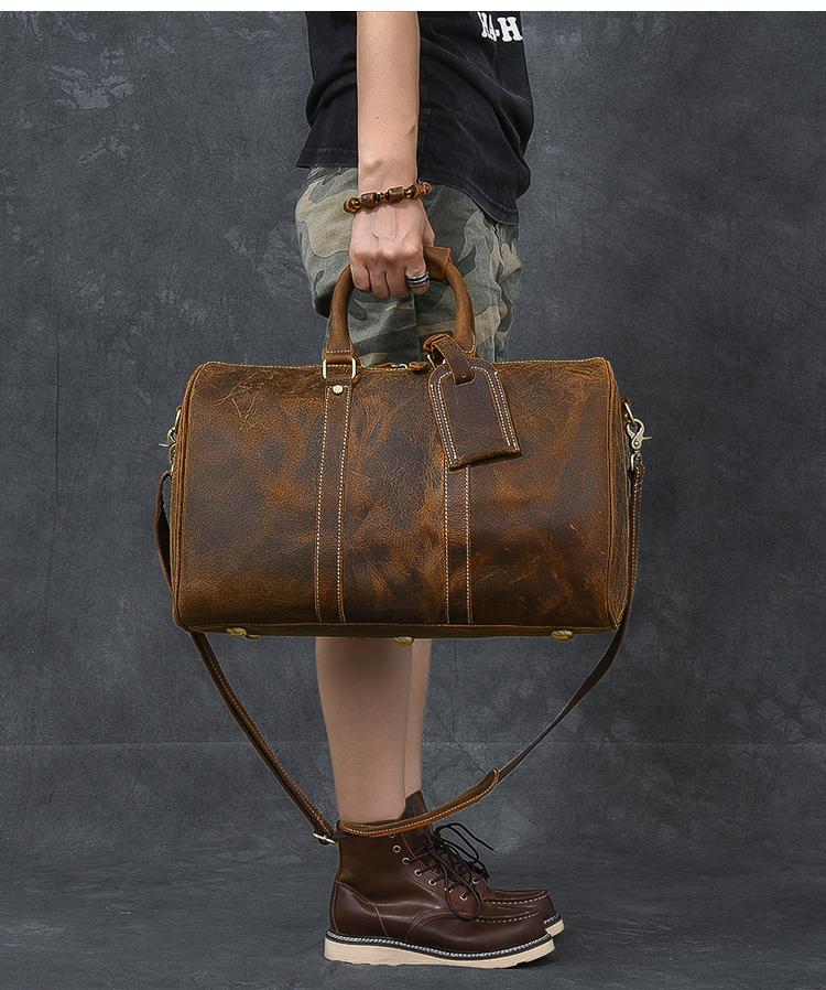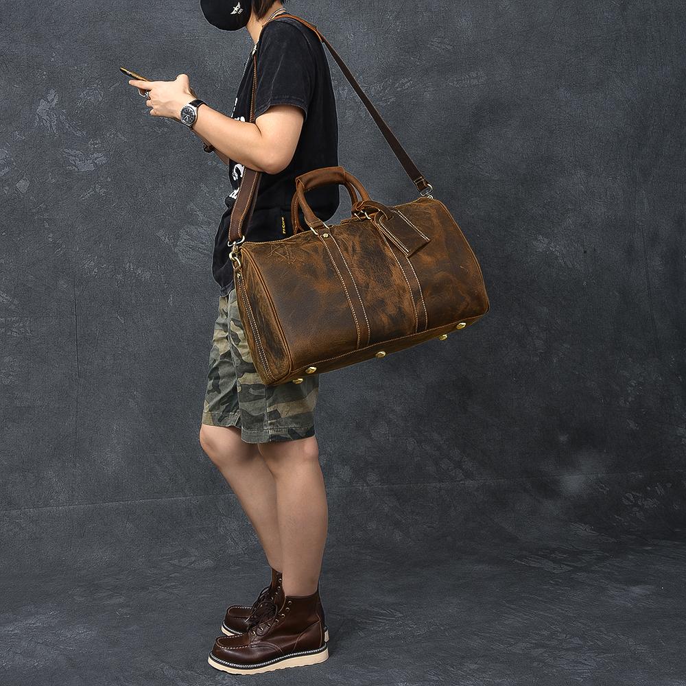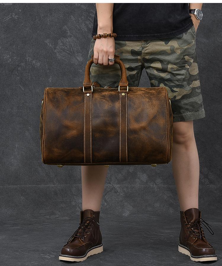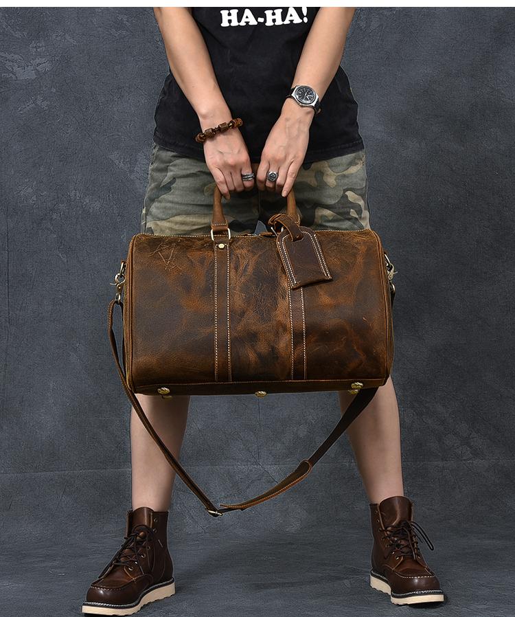 Design: Retro Brown Leather Men's Business Overnight Bag Large Travel Bag Duffel Bag Weekender Bag For Men