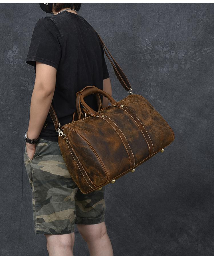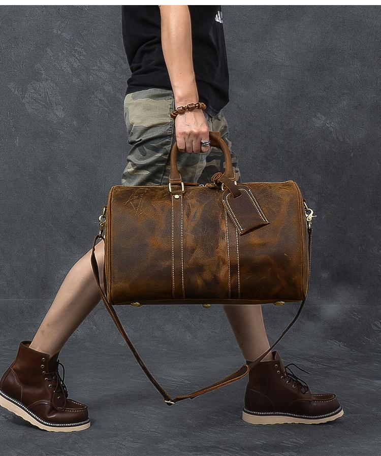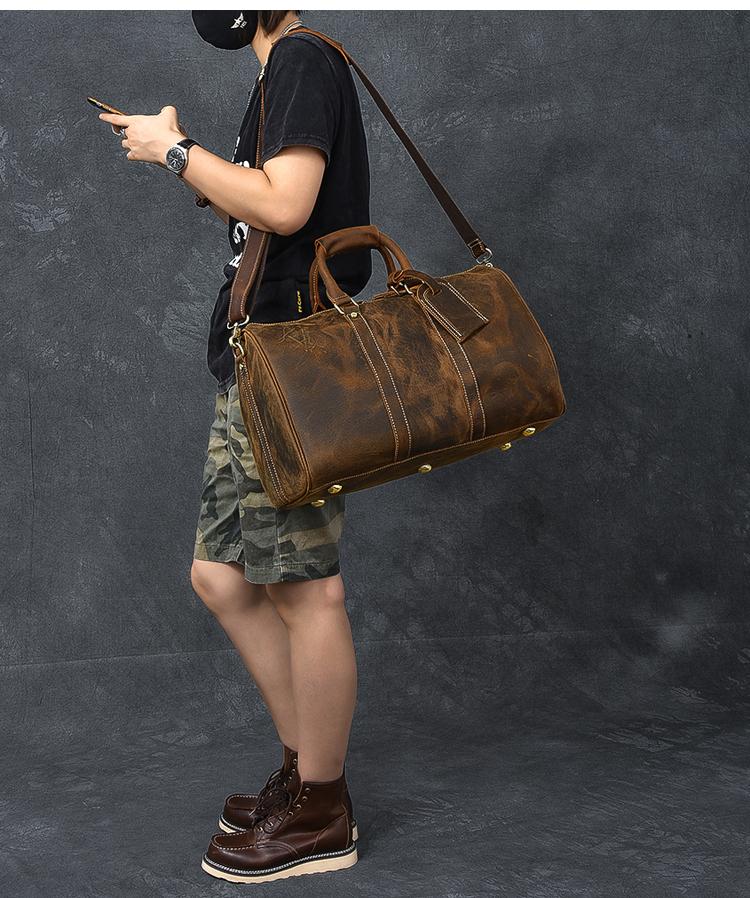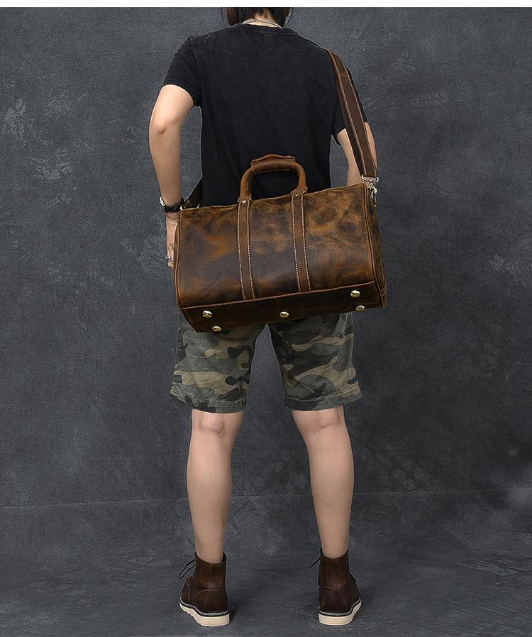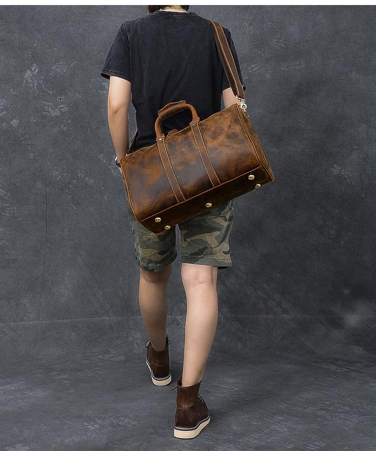 Design: Retro Brown Leather Men's Business Overnight Bag Large Travel Bag Duffel Bag Weekender Bag For MenOverview: