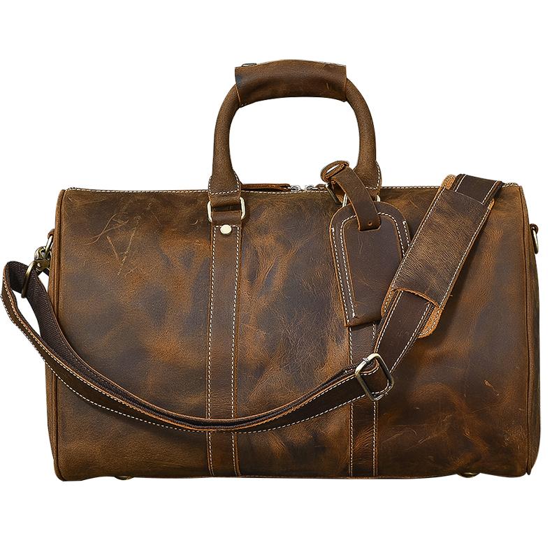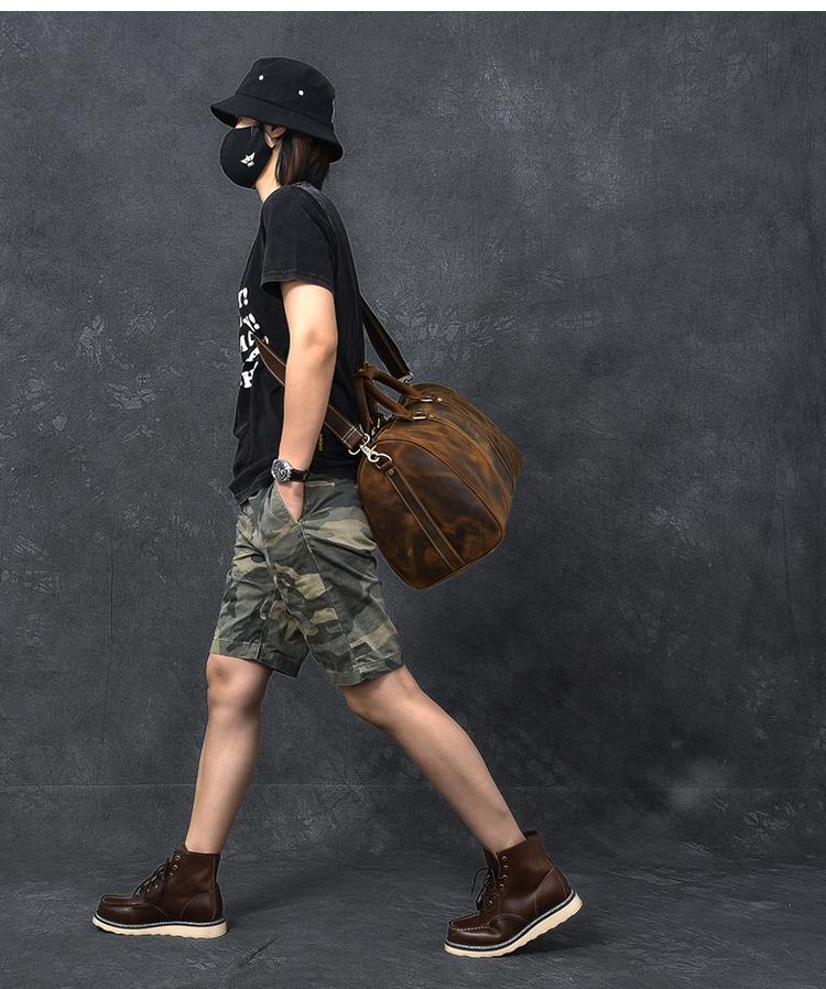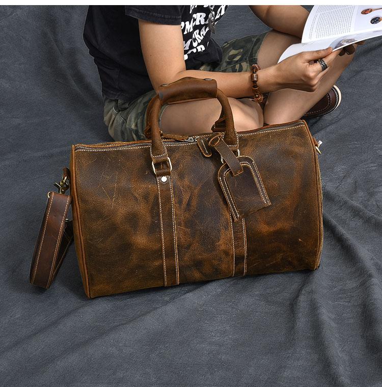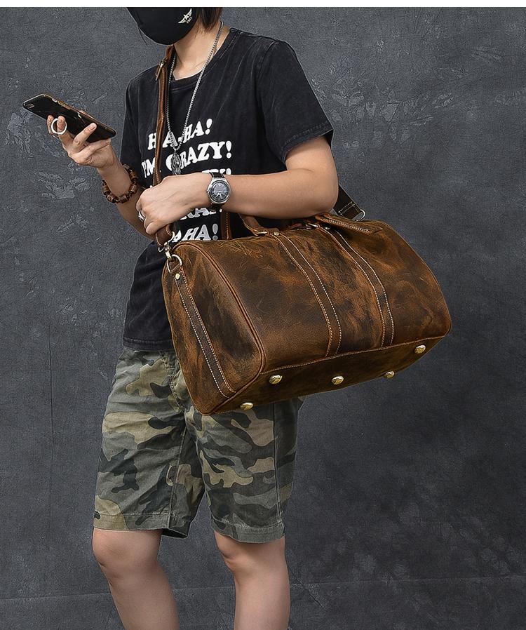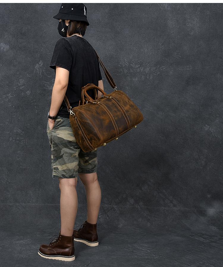 Design: Retro Brown Leather Men's Business Overnight Bag Large Travel Bag Duffel Bag Weekender Bag For MenOverview: