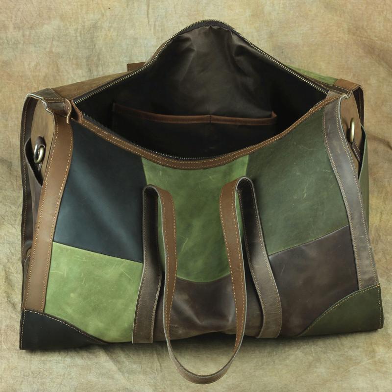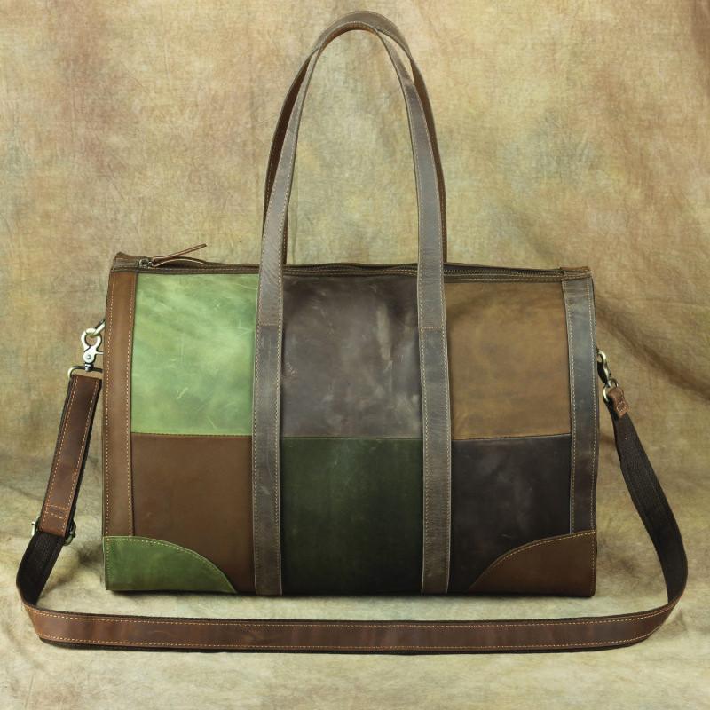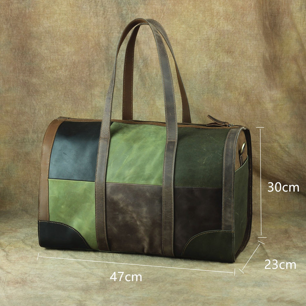 Design: Vintage Green Leather Men's Weekender Bag Travel Bag Overnight Bag For Men
