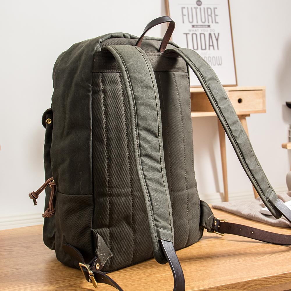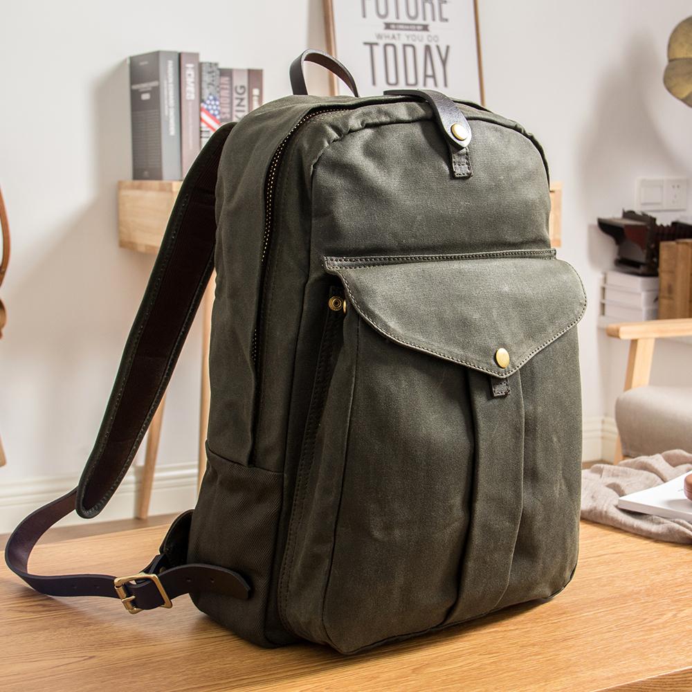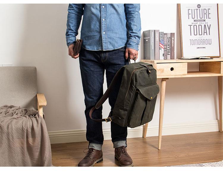 Style: Army Green Canvas Leather Mens Large 17'' Laptop Backpack College Backpack Hiking Backpack for Men