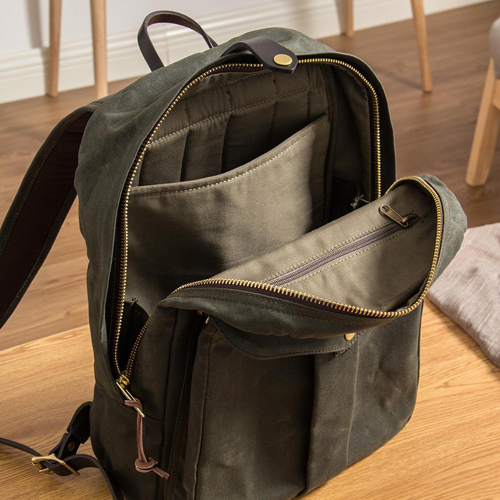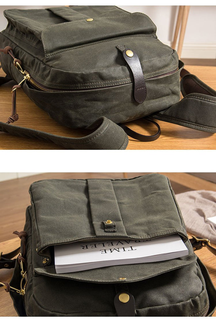 Design: Army Green Canvas Leather Mens Large 14'' Laptop Backpack College Backpack Hiking Backpack for Men