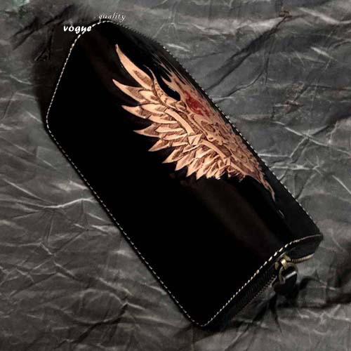Style: Badass Black Leather Men's Long Biker Handmade Wallet Ghost Skull Tooled Zipper Long Wallets For Men