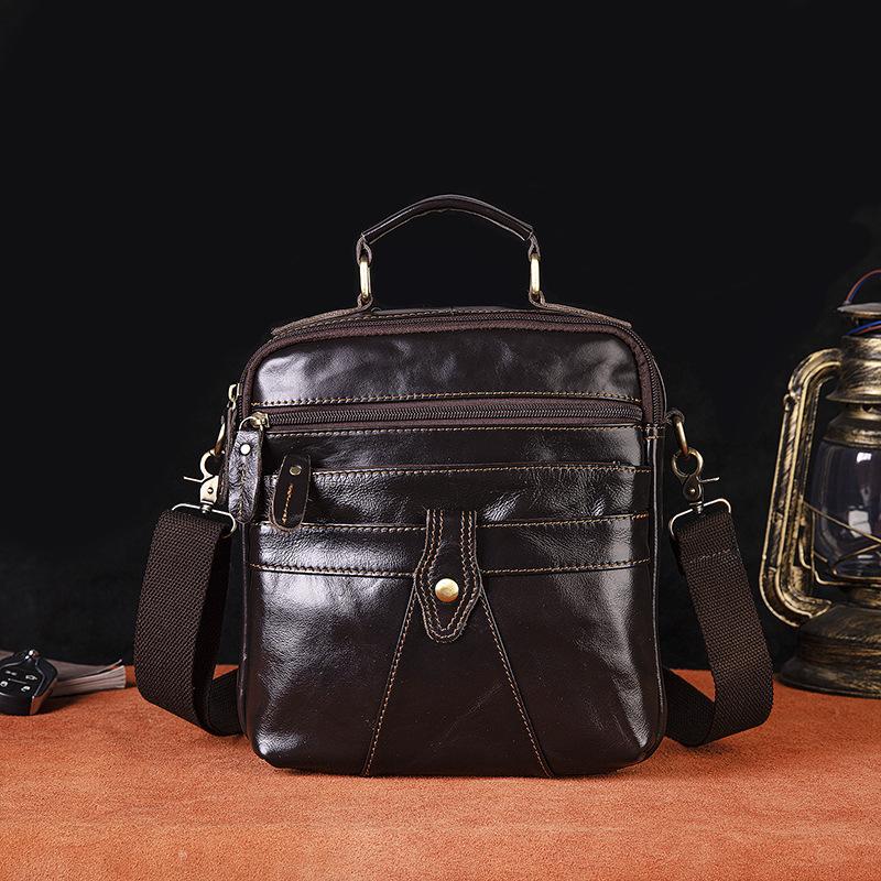 Design: Coffee LEATHER MEN'S Small Vertical Side Bag Messenger Bag Coffee Shoulder Bag FOR MEN