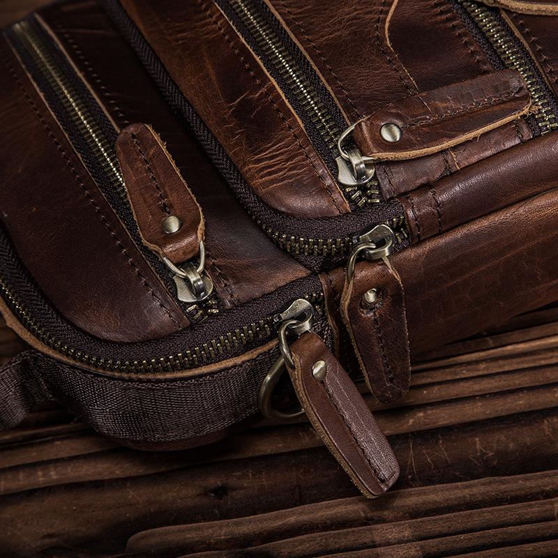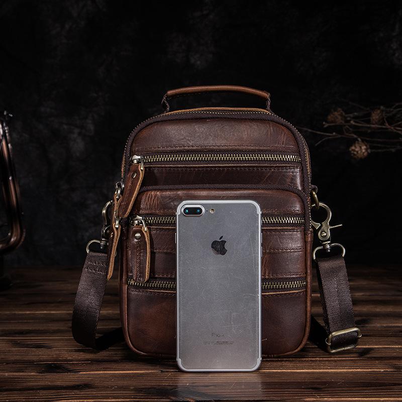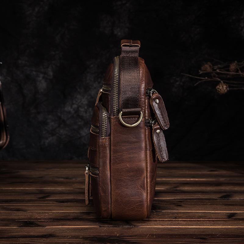 Design: BADASS Dark Brown LEATHER MENS 8 inches Multi-pocket Portable SHOULDER BAG SIDE BAG COURIER BAG MESSENGER BAG FOR MEN