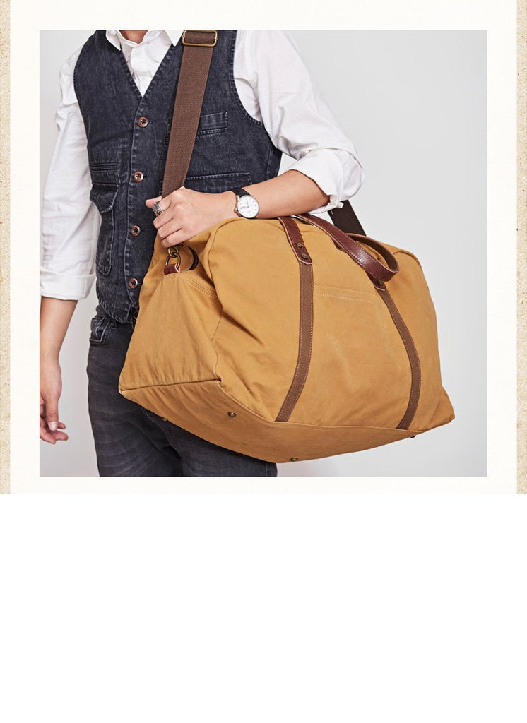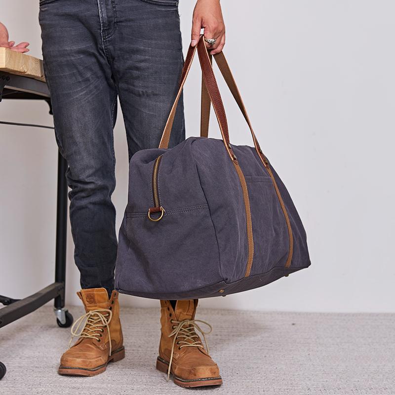 Style: Black Blue Mens Green Leather Canvas Large Weekender Bag Canvas Travel Shoulder Bag Large Duffle Bags for Men