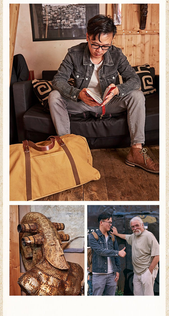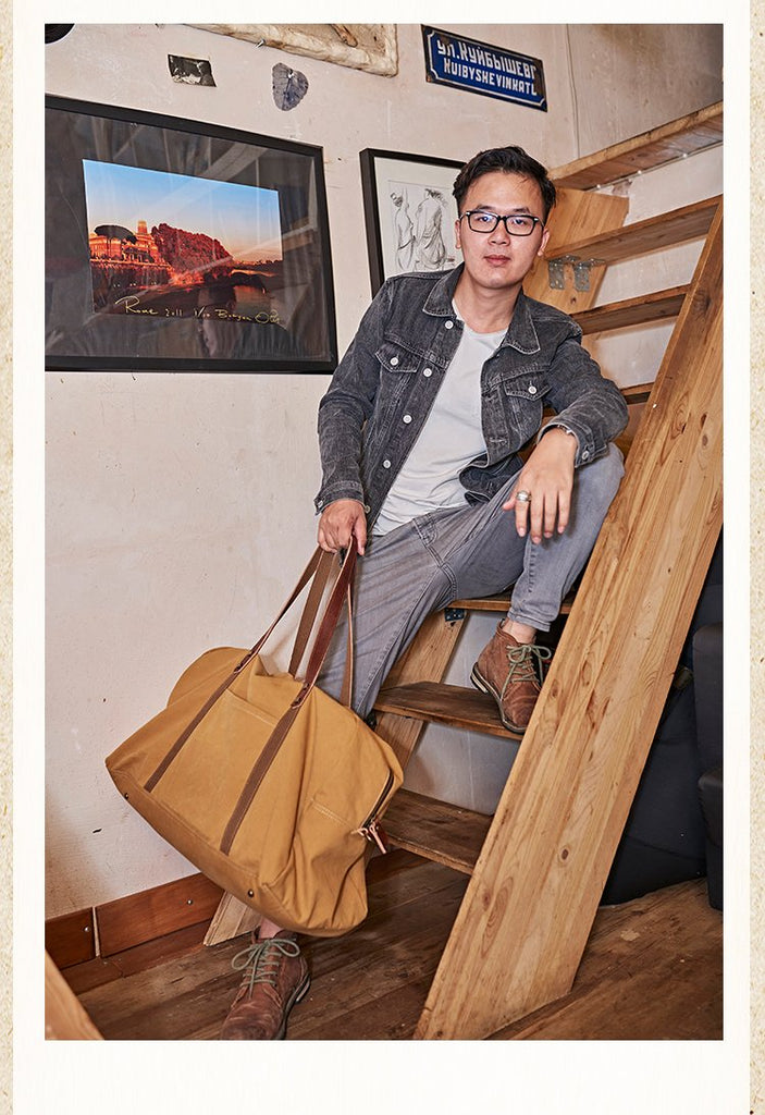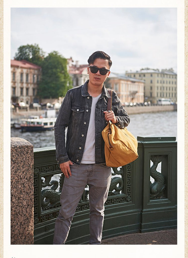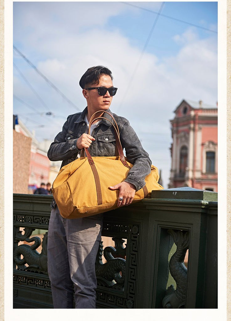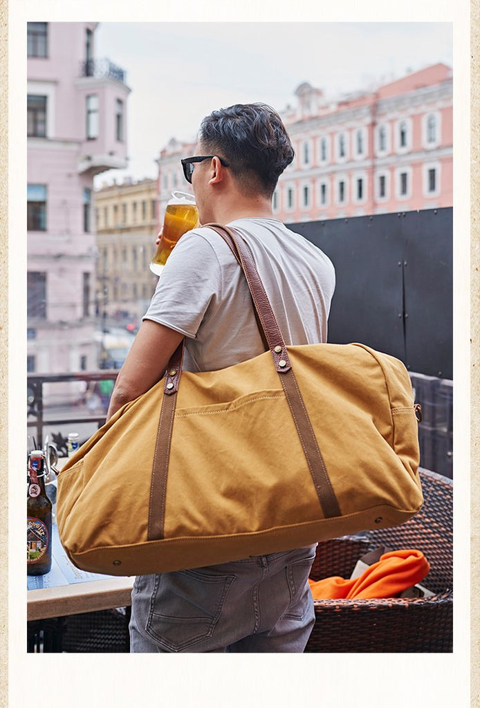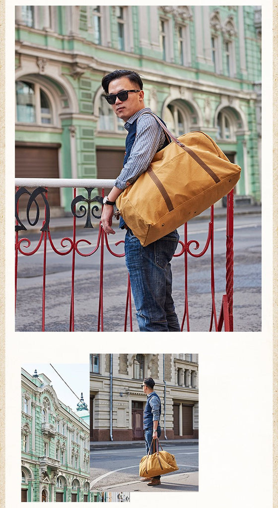 Design: Black Blue Mens Green Leather Canvas Large Weekender Bag Canvas Travel Shoulder Bag Large Duffle Bags for Men