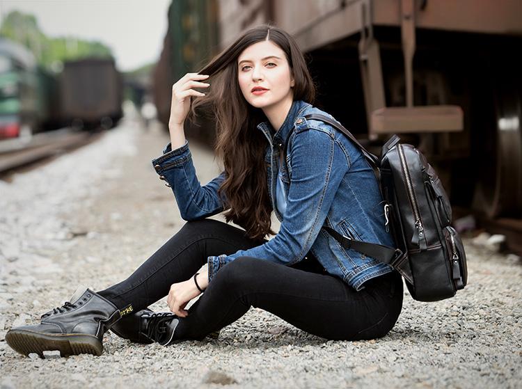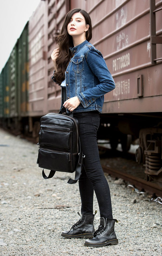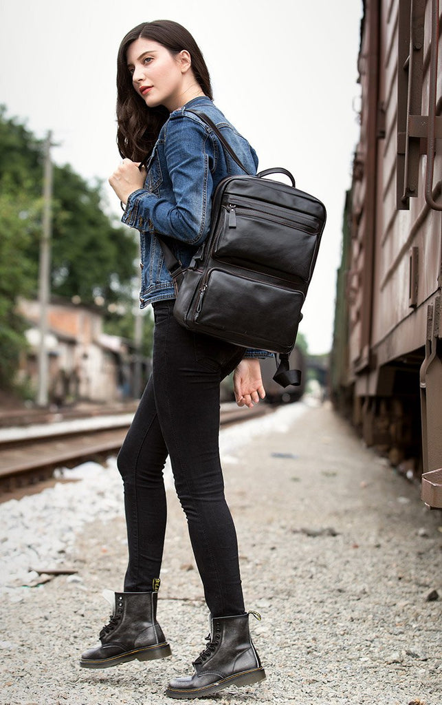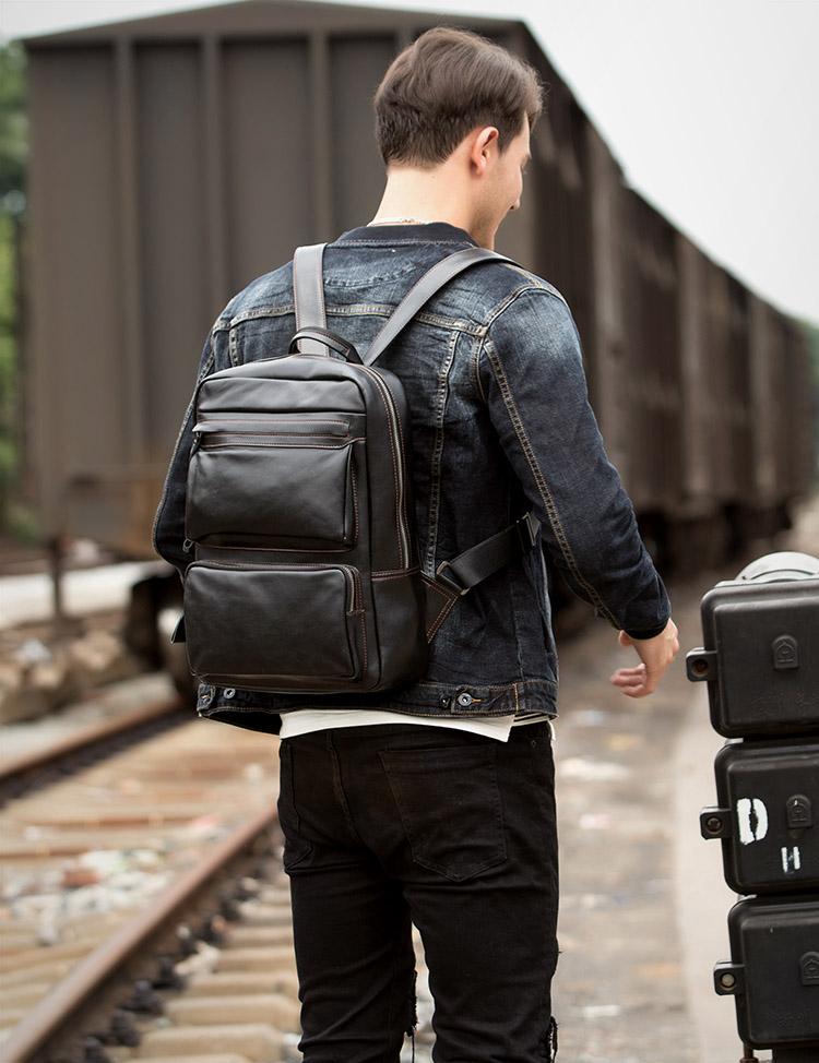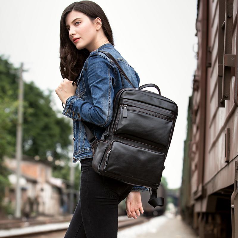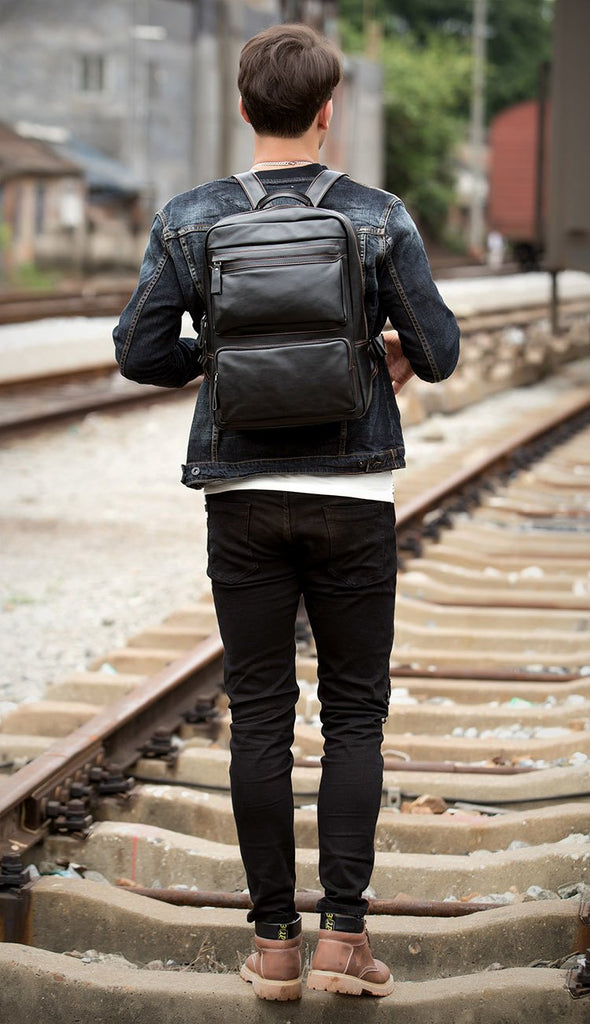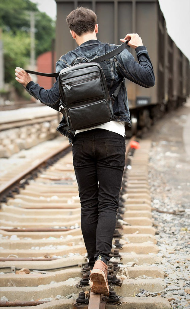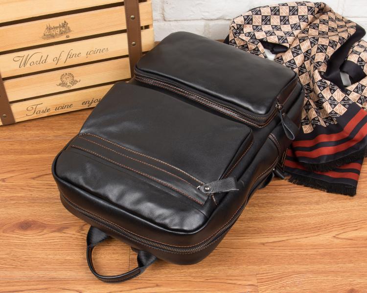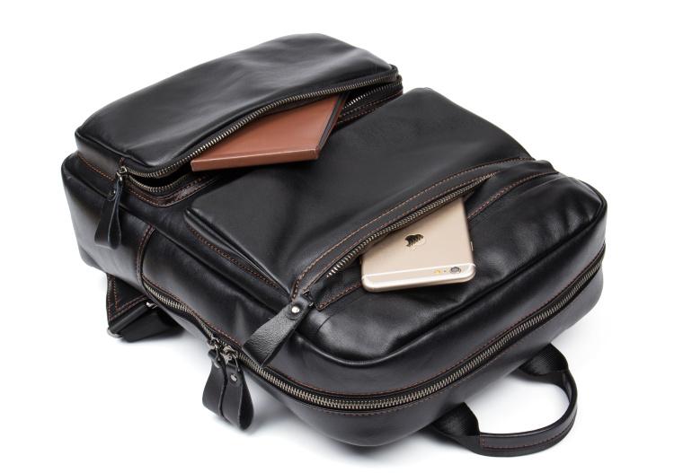 Design: Black Business Mens Leather 14-inch Computer Backpacks Cool Travel Backpacks School Backpack for men