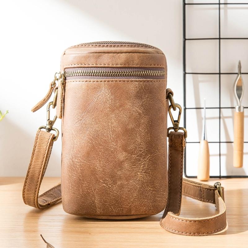 Style: Black Casual Leather Mens 8 inches Brown Messenger Bag Phone Bag Sling Bag For Men